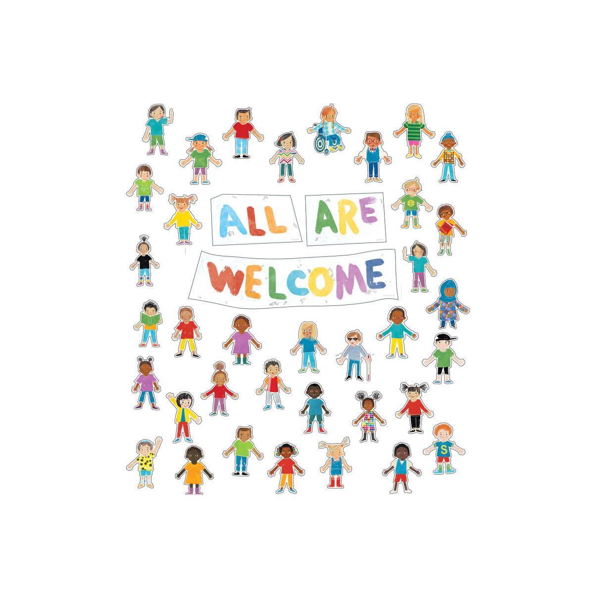 Create a welcoming environment that celebrates kindness, inclusivity, and diversity with the colorful imagery of the 39-piece All Are Welcome Bulletin Board Set. Perfect for adding visual interest to any area of your home or classroom, this set includes these pieces:• 1 "All Are Welcome" banner, assembled from 3 pieces