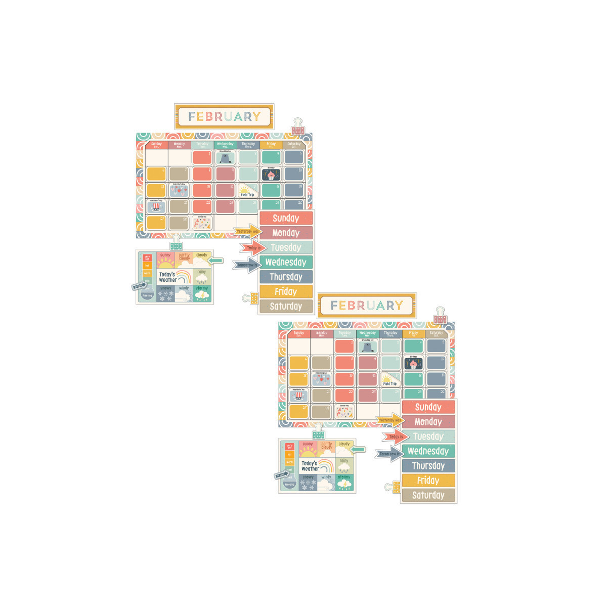 Teach your students weather, seasons, and essential calendar skills while staying organized with the Carson Dellosa We Belong Calendar Bulletin Board Set—perfect for bulletin board, cork board, and white board displays. Each 137-piece set includes a 23" x 13.8" wall calendar with 13" x 3.4" monthly headers, numbers, birthday, holiday, special occasion, and blank cover ups (2.7" x 2" each), a 7.6" x 13.8" days of the week chart, days-of-the-week arrows and 3 binder clip accents (4" x 2.6" each) a 10.2" x 7.2" weather chart, 4 weather chart arrows (2.1" x 1"each), an 8.3" x 10.2" seasons-month chart, 5 season overlays (4.2 x 0.6"each), and a 2.7" x 1.2" arrow. Use the monthly calendar to display birthdays, special occasions, holidays, and more, while using days of the week chart, weather chart, and season-month chart to reinforce days, seasons, and the weather associated with each for versatile learning for your students. Sold as a pack of 2 complete calendar bulletin board sets.