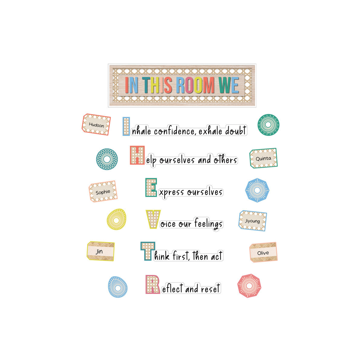 The bulletin board set provides a decorative way to motivate and inspire students