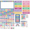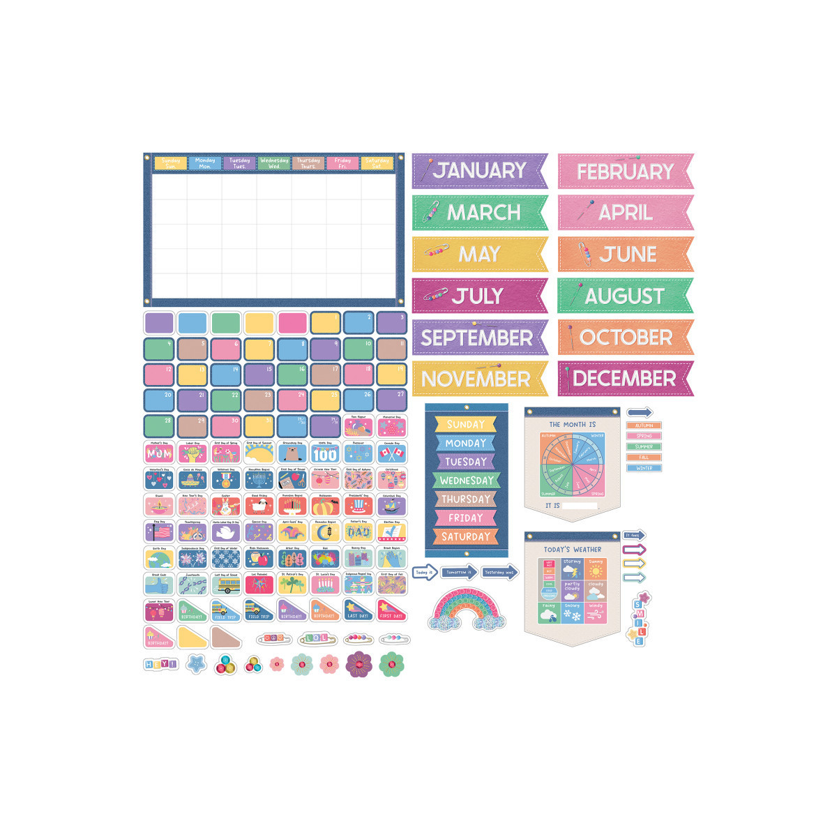 Add some flair to your homeschool or classroom monthly calendar with Carson Dellosa's Crafty and Cool Calendar Bulletin Board Set! The 145-piece bulletin board set includes a 22.5" x 13.3" monthly calendar with 11.79" x 3.07" monthly headers and 2.72" x 2.04" number, birthday, special occasion, and blank cover ups. The set also includes a 7.12" x 13.31" seasons chart, 8.23" x 9.88" weather chart, and 7.12" x 13.31" days of the week chart with days of the week arrows and other colorful accents. This wall calendar set helps reinforce schedules, important dates like holidays and birthdays, days of the week, seasons, weather, and more essential skills. This classroom calendar set is the perfect size for bulletin board, cork board, white board, and other wall displays.