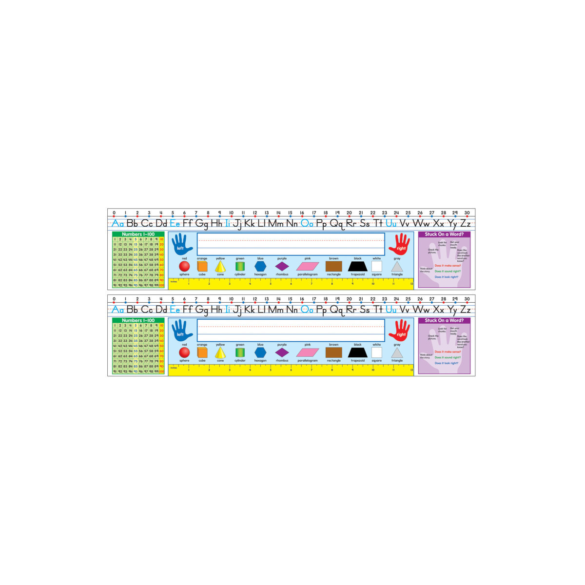 Desk nameplates are an excellent way to assign seats while also providing students with a helpful reference resource. You no longer need tape, staples, or push pins! The Quick Stick™ line is self-adhesive, sticking to most smooth surfaces like wood, metal, even painted cinder blocks! The good work holders come down as easily as they go up without damaging your walls. And, the best part is, they can be repositioned over and over again! Each pack includes 30 self-adhesive nameplates, measuring 17.5" x 4" each. Sold as 2 packs for a total of 60 nameplates.