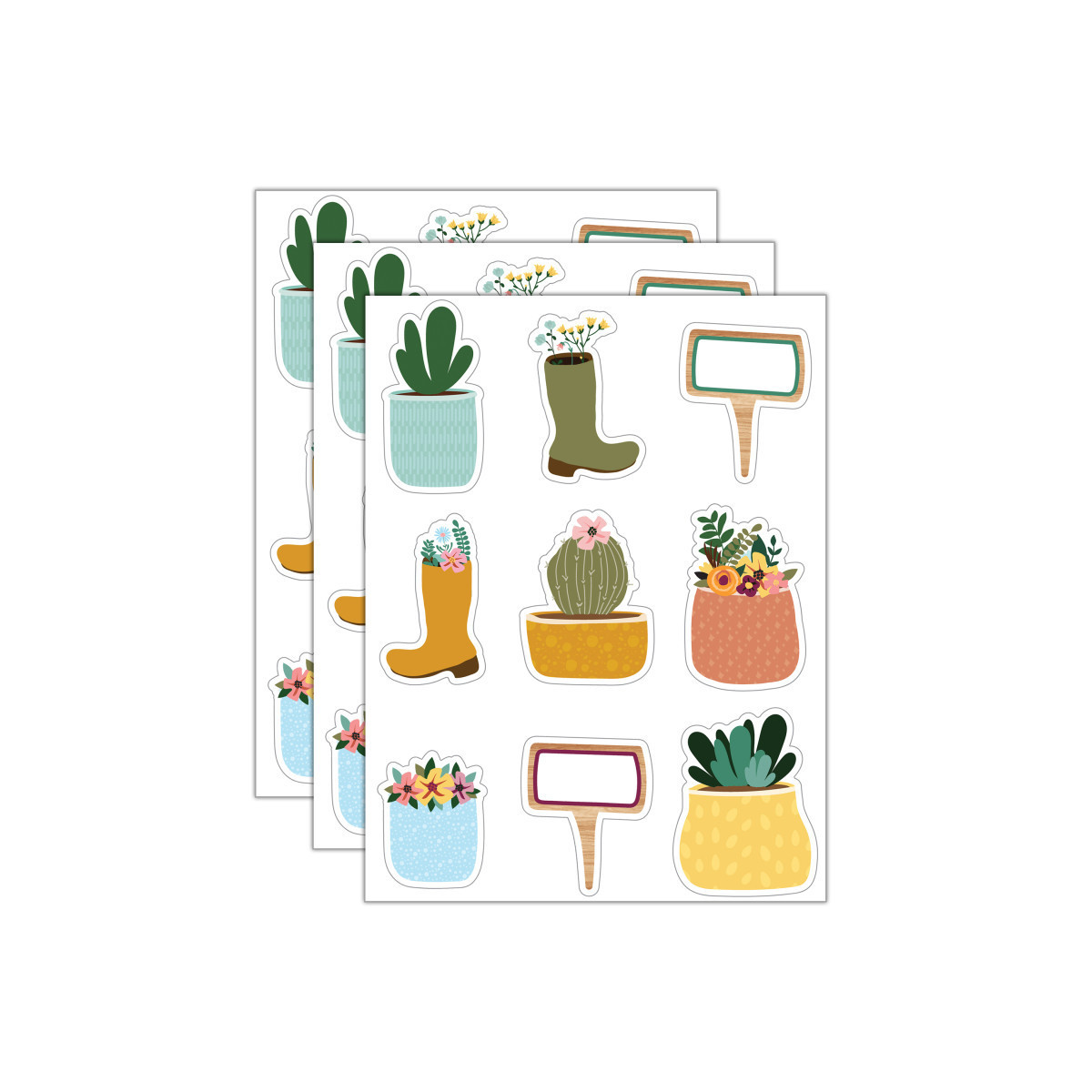 Add the perfect finishing touches to any room or display with Carson Dellosa's Grow Together Garden Bulletin Board Cutouts! Cutouts are ideal for just about anything. Each 36-pack features 9 flowerpots ranging in size from 4" x 5" to 4.35" x 6", 9 plants ranging in size from 3.2" x 6" to 5" x 6.35", 12 yellow and green boots ranging in size from 3.8" x 6 to 4" x 5, and 6 green and purple 4.8" x 5.7" garden signs—perfect for spring décor and summer bulletin board decorations. Printed on durable card stock, these versatile, ready-to-use bulletin board decorations are die-cut and reusable if laminated. With plenty of writing room, cut-outs can be used as desk or cubby tags, as invitations, postcards, flash cards, craft projects, games, and more. Check out other Grow Together products to create a cohesive classroom theme! Sold as 3 packs for a total of 108 pieces.