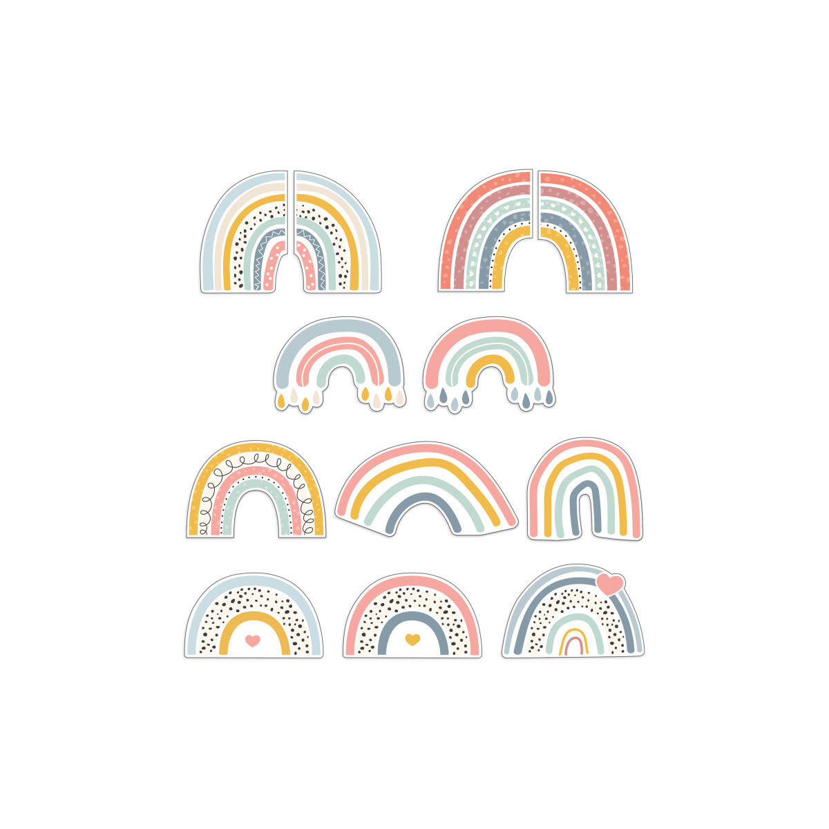 Soft, welcoming rainbow designs makes these perfect for decorating walls, bulletin boards, doors, and desks