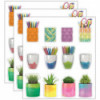 Colorful planter and cup cut-outs are perfect for brightening walls, bulletin boards, doors, and desks