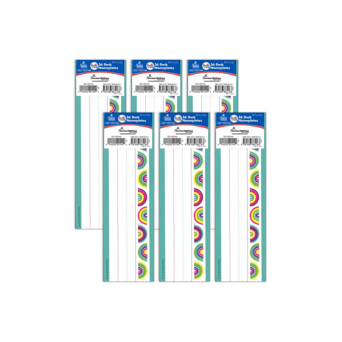 The Kind Vibes Nameplates for the classroom provide an easy way to label and organize for a successful school year. Each nameplate measures 9.5" x 2.87" and features brightly colored rainbows that are sure to add a touch of optimism and cheer to the classroom. Each pack includes 36 nameplates. Sold as 6 packs for a total of 216 nameplates.