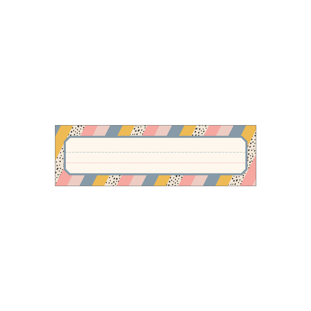 Organize cubbies, lockers, classroom supplies, student desks, and more with boho décor using the Carson Dellosa We Belong Nameplate Set. The nameplate set features 36 nameplates to accommodate an entire classroom and more, each measuring about 9.5" x 2.8". Use each student desk name tag on each student's desk, as a cubby or desk organizer, or as chalkboard labels. You can also use the name tags for classroom and locker décor, classroom storage, or use to label and organize boho classroom décor and office décor. Each desk nameplate has ample writing space for names and features colorful, boho stripes with a black and white leopard print dot design to add boho neutral animal print classroom décor to your school supplies. Classroom organization has never been easier!