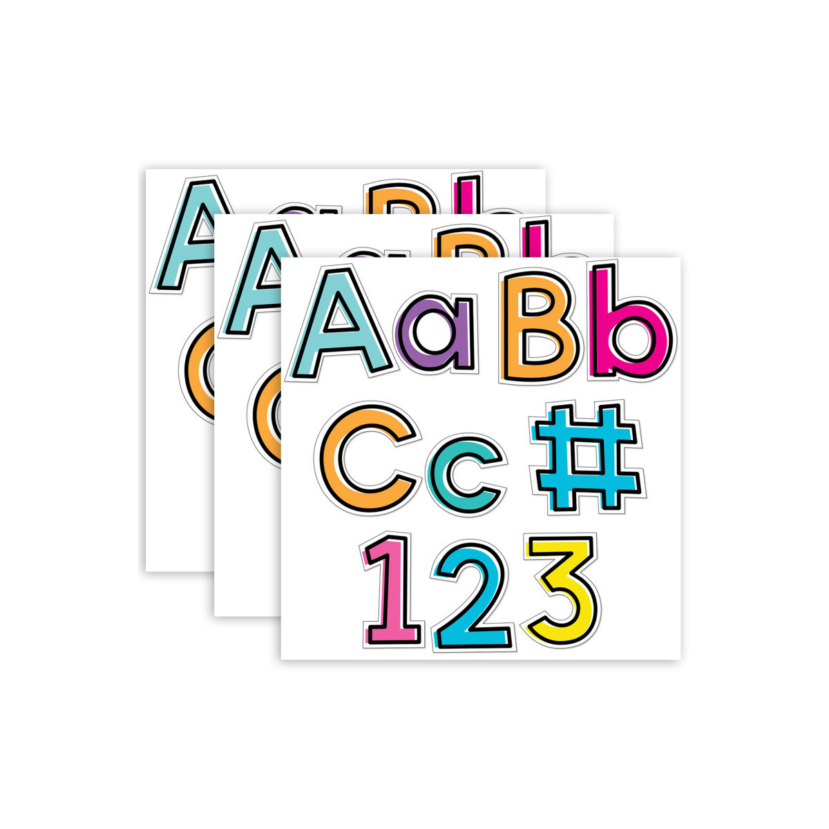 Create attention-grabbing displays with the Kind Vibes Combo Pack EZ Letters. This pre-punched set features bright, cheerful colors that are sure to help your messages stand out! Each combo pack includes 219 pieces (70 uppercase letters, 87 lowercase letters, 20 numbers, 20 punctuation marks, 22 symbols). Sold as 3 packs for a total of 657 pieces.