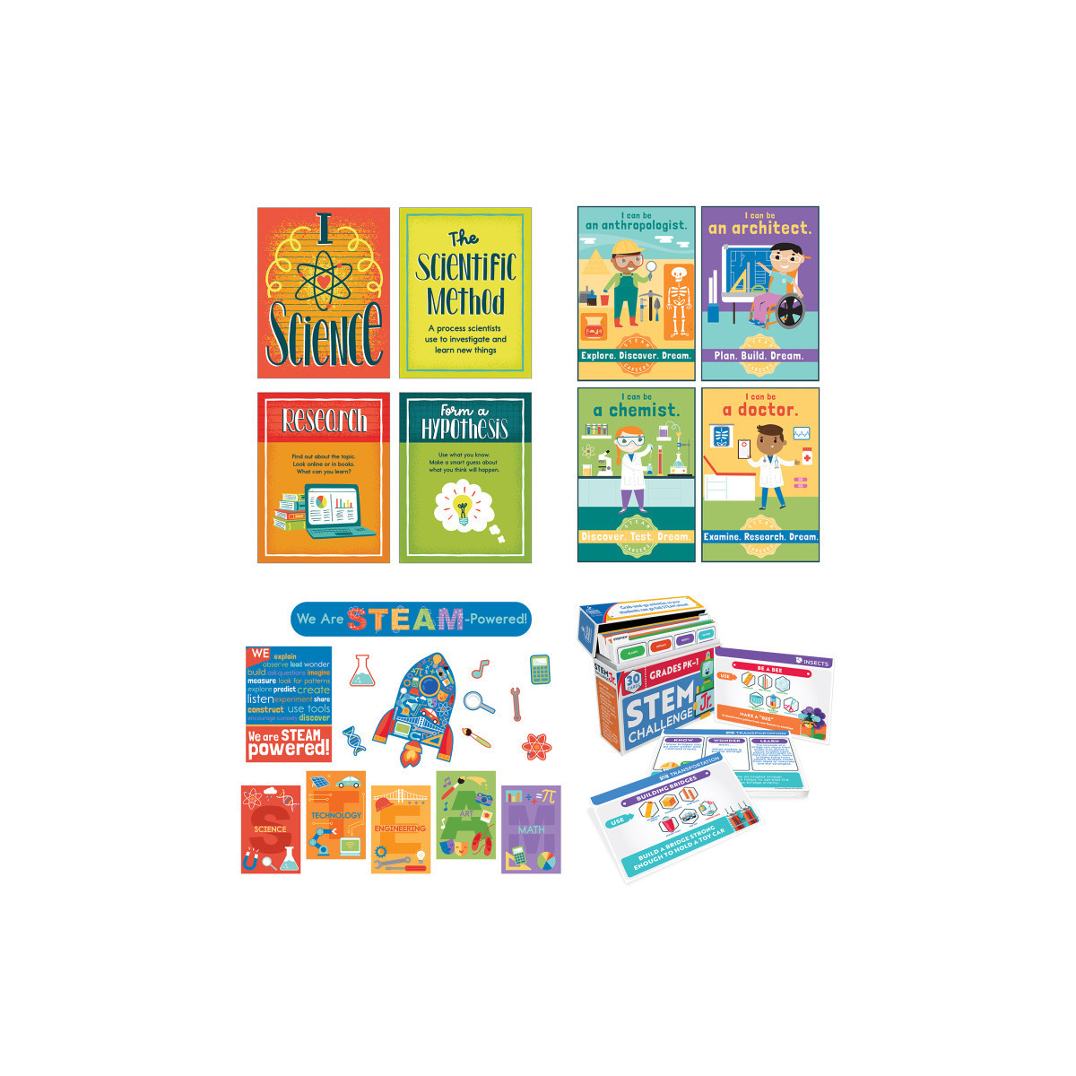 What's Included: The 77-piece science kit includes The Scientific Method posters, a STEAM Careers bulletin board set, STEAM bulletin board set, and STEM Challenge, Jr. activities.
