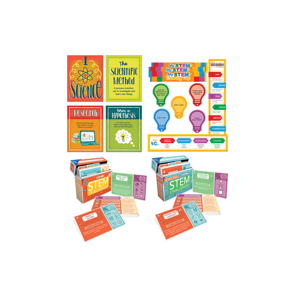 What's Included: The 124-piece science kit includes The Scientific Method posters, STEM Instructional Resources bulletin board set, Seasonal STEM Challenges and STEM Challenges activities.