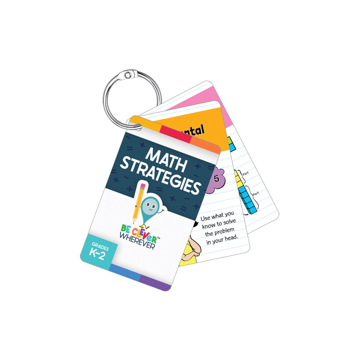 Make learning fun—anywhere, anytime—with Carson Dellosa's Be Clever Wherever Things on Rings Math Strategies. This portable resource for kindergarteners—2nd graders is packed with essential math strategies, including how to count on and back, mental math, fact families, how to write number sentences, and more.
