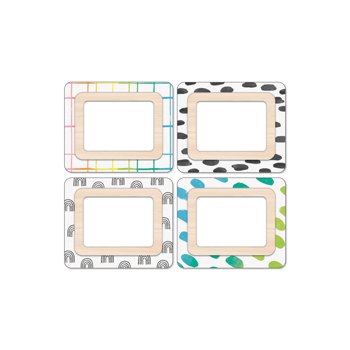 Stay organized in style both in and out of the classroom with Carson Dellosa's Creatively Inspired Name Tags. The name tag set features 40 self adhesive name tags with rainbows, black and white leopard print, rainbow stripes, and polka dot design, each measuring 3" x 2-1/2". The versatile name stickers are great for back to school introductions, parent-teacher conferences, and field trip name tag labels, as well as daycare labels, cubby or desk name tags, labeling classroom supplies, teacher supplies, and more. With ample writing space for names amid stylish, boho décor designs, these sticker name tags are great for any occasion and a great add-on rainbow classroom and boho classroom décor.