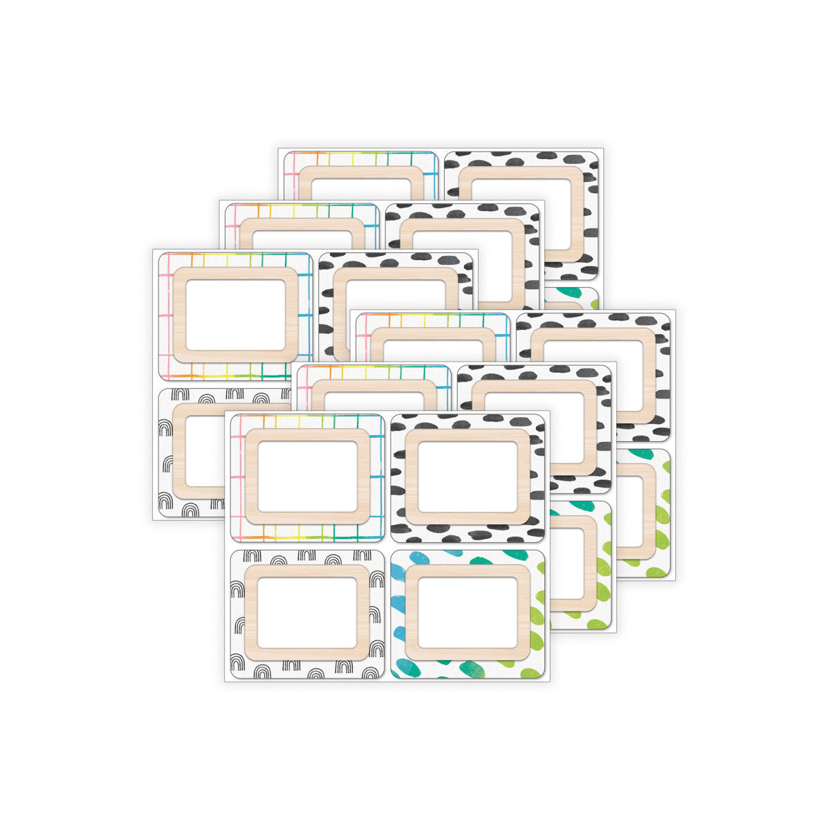 Stay organized in style both in and out of the classroom with Carson Dellosa's Creatively Inspired Name Tags. Each pack includes 40 self adhesive name tags with rainbows, black and white leopard print, rainbow stripes, and polka dot design, each measuring 3" x 2-1/2". The versatile name stickers are great for back to school introductions, parent-teacher conferences, and field trip name tag labels, as well as daycare labels, cubby or desk name tags, labeling classroom supplies, teacher supplies, and more. With ample writing space for names amid stylish, boho décor designs, these sticker name tags are great for any occasion and a great add-on rainbow classroom and boho classroom décor. The Creatively Inspired collection, designed by Stephanie and Loreal of @HappilyEverElementary, partnered with Carson Dellosa to help create a vibrant, positive, and creative environment that inspires students to learn. Sold as 6 packs for a total of 240 tags.