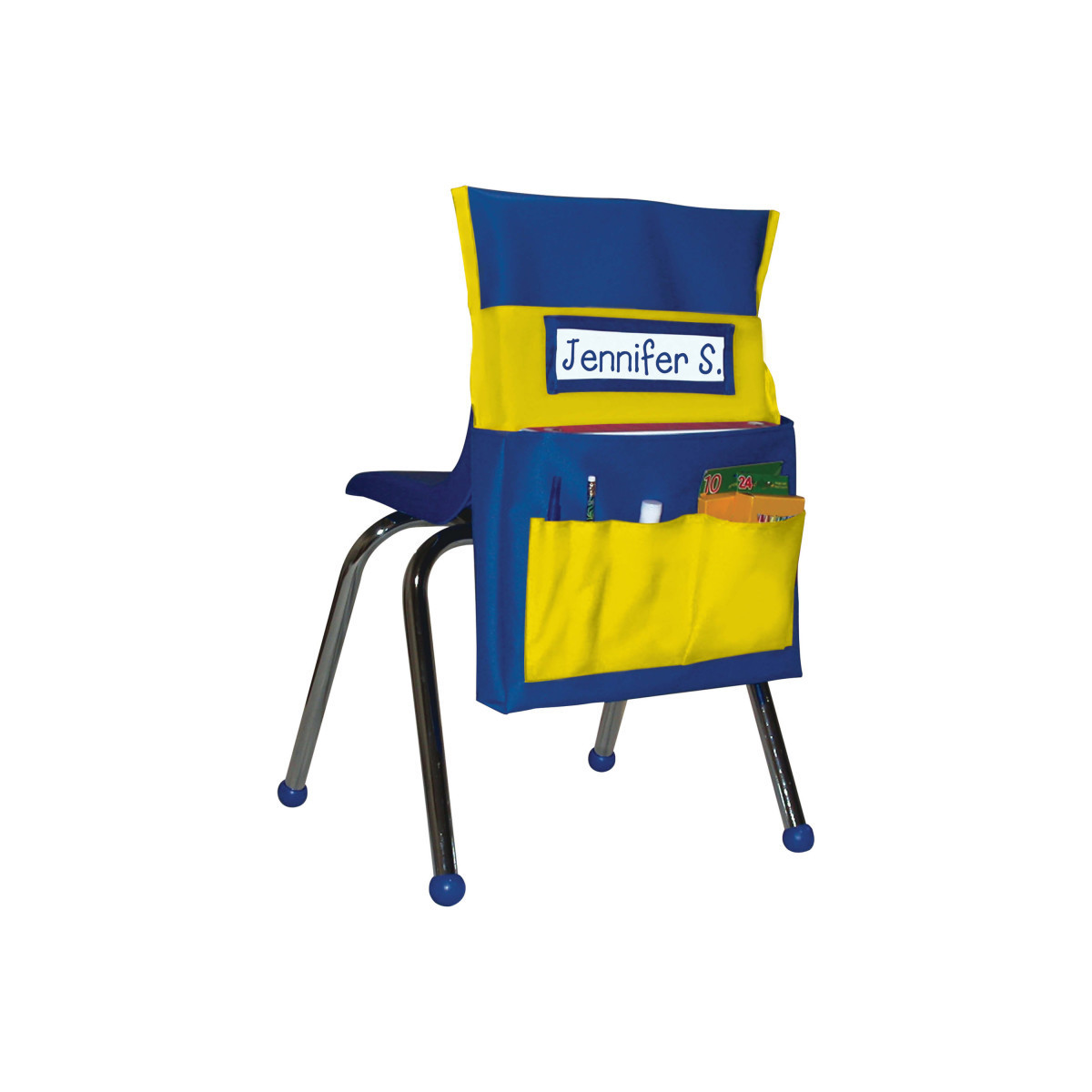 The Chairback Buddy™ Pocket Chart is the perfect solution for your classroom organization needs and the easiest way to store supplies within reach! It slips over the back of most preschool and early elementary chairs, measures approximately 14.5" wide x 19" high x 2" deep, and features: