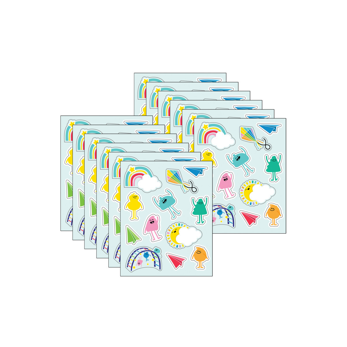 Carson Dellosa's Happy Place Shape Stickers inspire students to keep up the good work. Each pack of fun stickers includes 6 sheets that feature vibrant and cheerful shapes such as smiling people, suns, rainbows, multicolored kites, and an array of bright paper airplanes. Each sheet features 12 stickers, ranging in size from about 1-inch x 1/2-inch to 2 inches x 1 1/4 inches. Acid-free and lignin-free, these stickers are great for encouraging students and rewarding them on a job well done. Stickers are also great for scrapbooking and photo projects, enhancing assignments, goodie bag gifts, and much more. Education happens everywhere, and Carson Dellosa strives to provide the tools needed to inspire learning everywhere it happens. Each pack includes 72 kids stickers.
