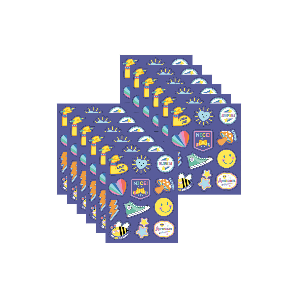Reward your students for a job well done with Carson Dellosa's We Stick Together Motivational Stickers! Each sticker features a retro design or positive sayings like "Great job!" and "Groovy!" to commend students on their achievements and good behavior. Each pack includes 72 reward stickers on 6 sheets. Sold as 12 packs for a total of 864 stickers.