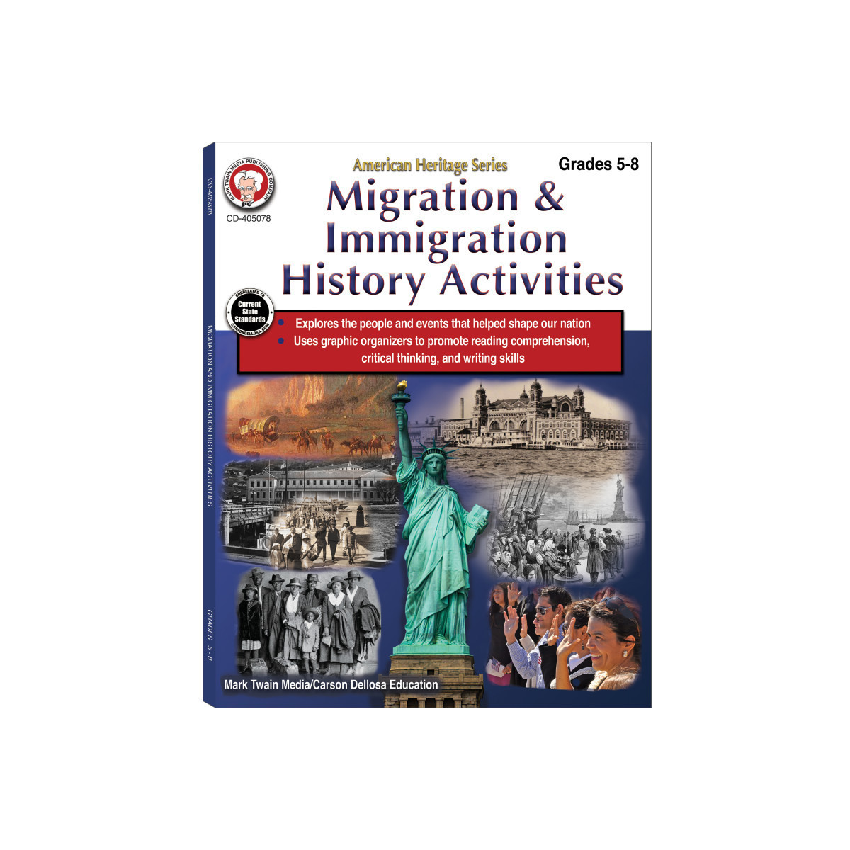 Help your 5th grader, middle school, or high school child build proficiency in US history with the activity-packed Mark Twain Migration & Immigration History Activities Workbook! The 64-page history workbook studies American history and culture in the United States, with topics including major migration and immigration events, coming to America, US citizenship, and more. Perfect for both classroom curriculum and homeschool curriculum, the 64-page social studies workbook includes both a Reading Selection, an Activity Page, and graphic organizers to promote reading, critical thinking, and writing skills. This American history workbook promotes current National and State Standards.