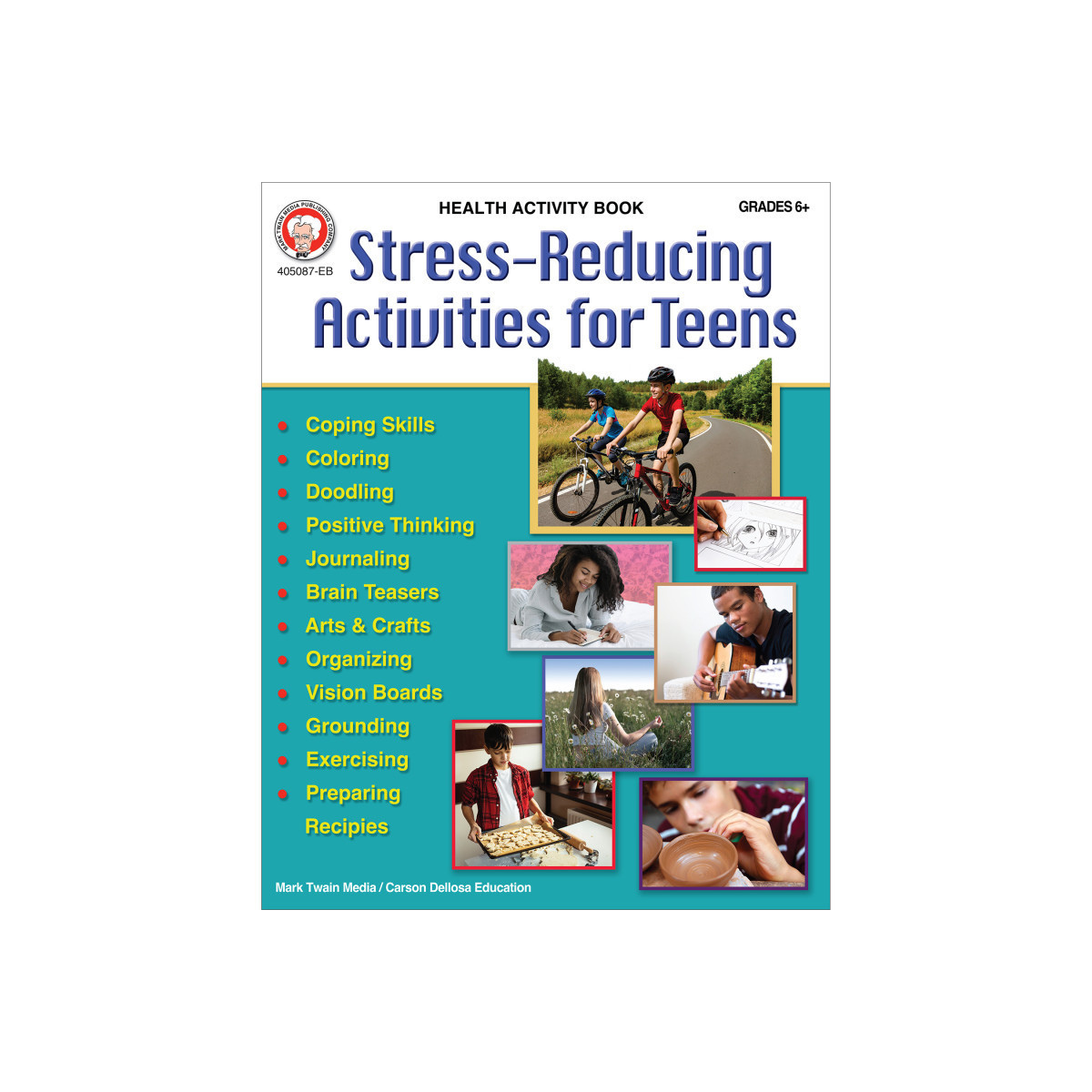 Help students cope with everyday stressors and mental health struggles with the Mark Twain Stress-Reducing Activities for Teens Anxiety Workbook! Health and Wellness Workbooks for Kids are a great way for middle school and high school kids to foster a growth mindset through fun and focused practice. Learn about stress and anxiety relief for teens, including positive coping skills, positive affirmations, organizing, exercise, grounding, and other health and wellness concepts. Each section begins with an explanation of the category for the parent or teacher and how the category can be used to help children cope, improving their mental, emotional, and social well-being.