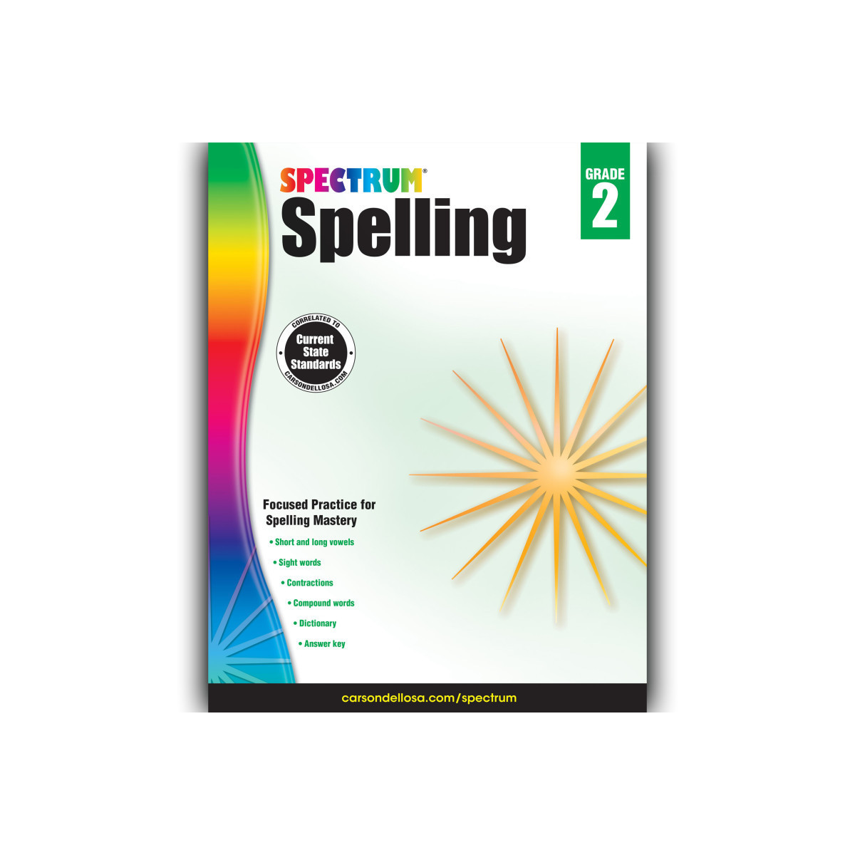 The Spectrum® Spelling Workbook for second grade features 208 pages of progressive lessons and fun, full-color puzzles and riddles that help students strengthen their spelling skills.