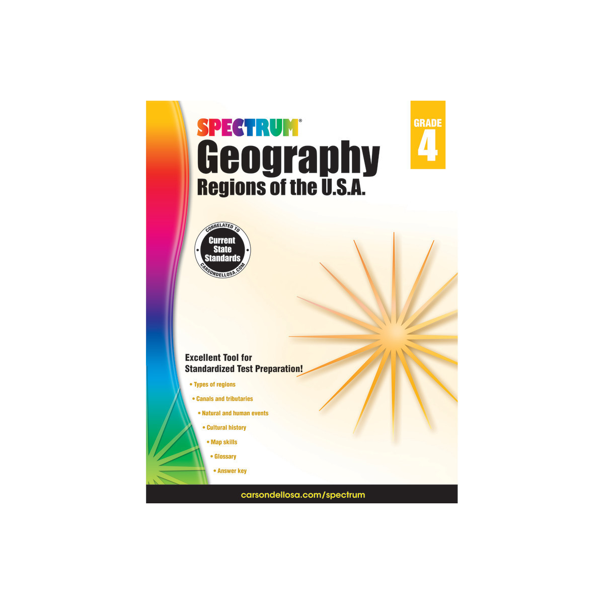 Spectrum Geography: Regions of the U.S.A., perfect for students in grade 4, strengthens geography skills by focusing on types of regions, canals and tributaries, natural and human events, map skills, and more.