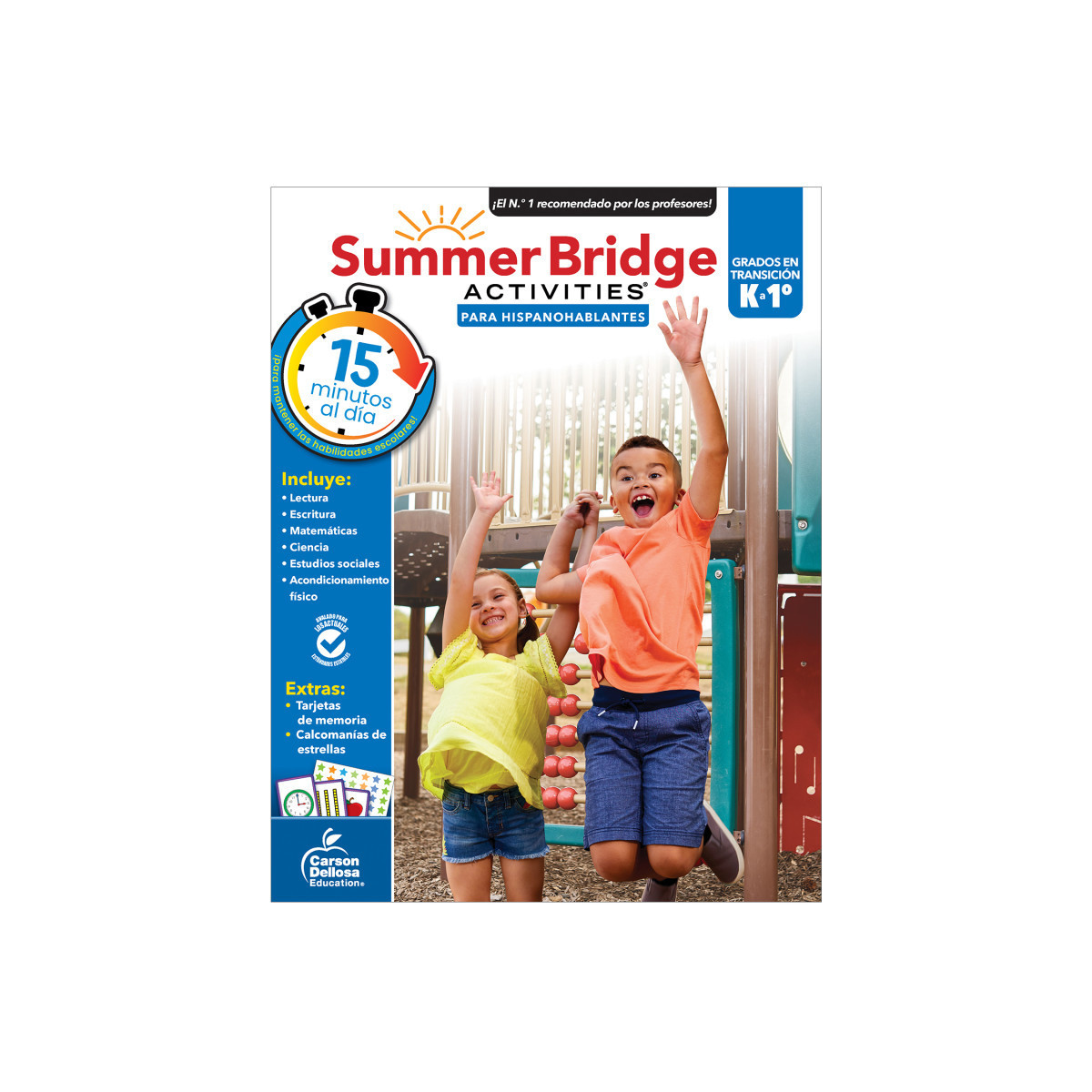 Prevent summer learning loss and prepare your child for back-to-school success in just 15 minutes a day with engaging activities, exercises, fun games, and more – all in one workbook with Summer Bridge Activities Spanish Workbook! This Spanish book helps Spanish-speaking kindergarteners - first graders keep their skills sharp while learning English during the summer months to stop summer slide through fun practice pages and activities, covering math, science, reading, writing, social studies, fitness, and more. Students practice handwriting, counting, hands-on science experiments, and other engaging topics, with both activities and directions in Spanish. This Spanish workbook for kids includes flash cards, stickers, and a completion certificate, and features a skill matrix and answer key to track student progress. Each page is numbered by day so kids and parents can track progress and reach monthly learning goals.