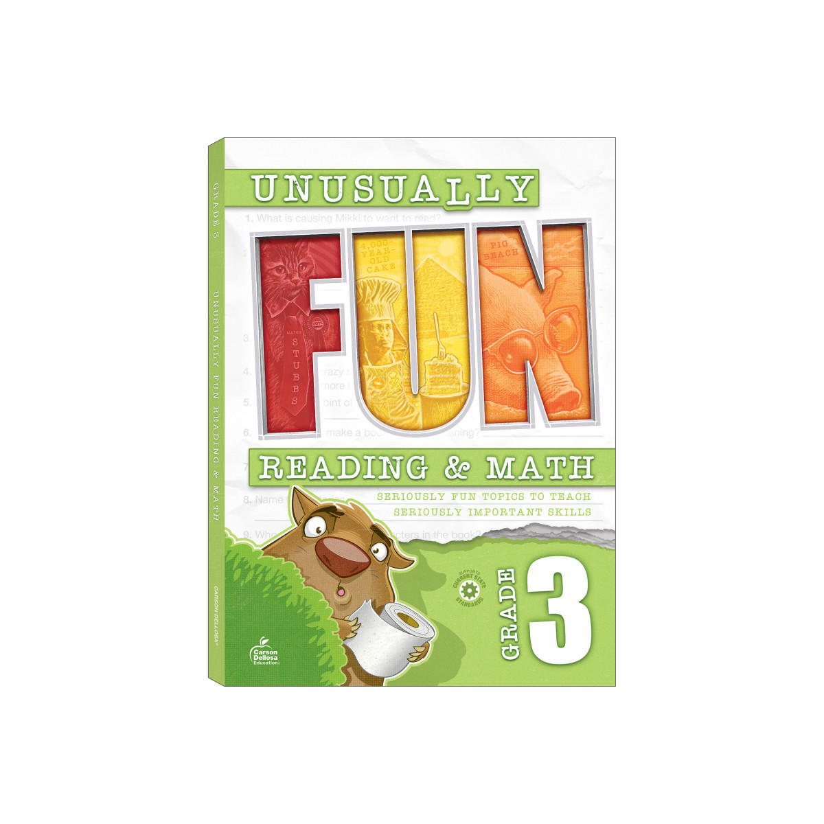 Unusual? Check. Fun? Check. Unusually Fun 3rd Grade Math & Reading Workbooks have seriously fun topics that teach seriously important 3rd grade math and reading skills! Third grade students learn unusually fun facts while practicing math, reading comprehension, and critical thinking skills in a fun and engaging way. The 256-page 3rd grade reading & math workbook features reading comprehension passages and questions, writing practice, math problem solving, puzzles, mazes, brainteasers, creative thinking activities, and so much more! Track your 3rd grade student's progress along the way using the answer key in the back of the reading & math workbook before moving on to new lessons and topics that will keep kids wanting to learn more and more!