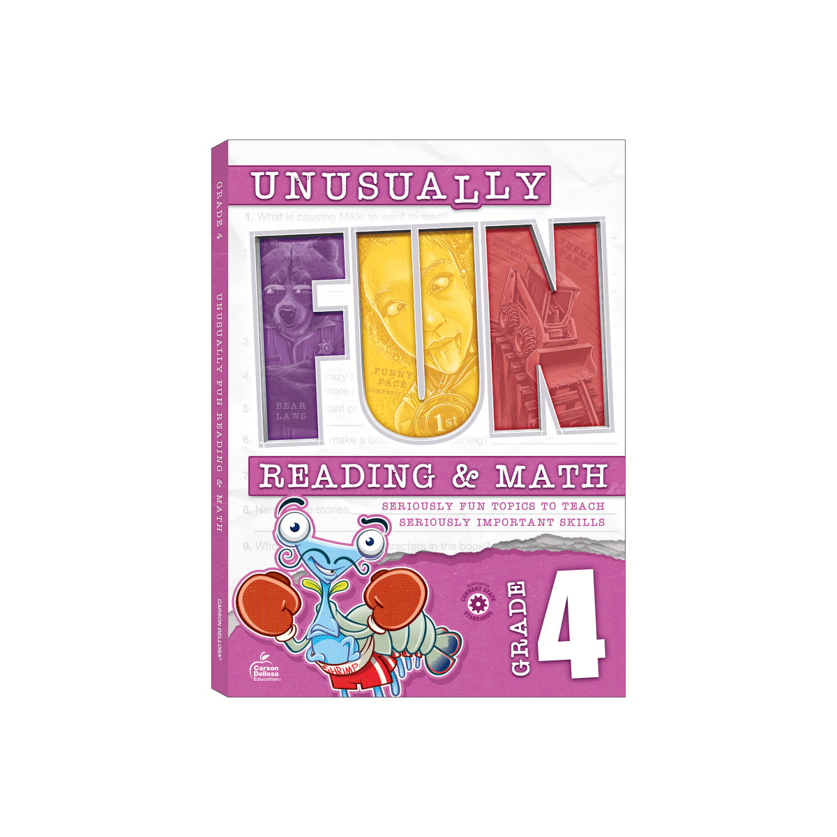 Unusual? Check. Fun? Check. Unusually Fun 4th Grade Math & Reading Workbooks have seriously fun topics that teach seriously important 4th grade math and reading skills! Fourth grade students learn unusually fun facts while practicing math, reading comprehension, and critical thinking skills in a fun and engaging way. The 256-page 4th grade reading & math workbook features reading comprehension passages and questions, writing practice, math problem solving, puzzles, mazes, brainteasers, creative thinking activities, and so much more! Track your 4th grade student's progress along the way using the answer key in the back of the reading & math workbook before moving on to new lessons and topics that will keep kids wanting to learn more and more!