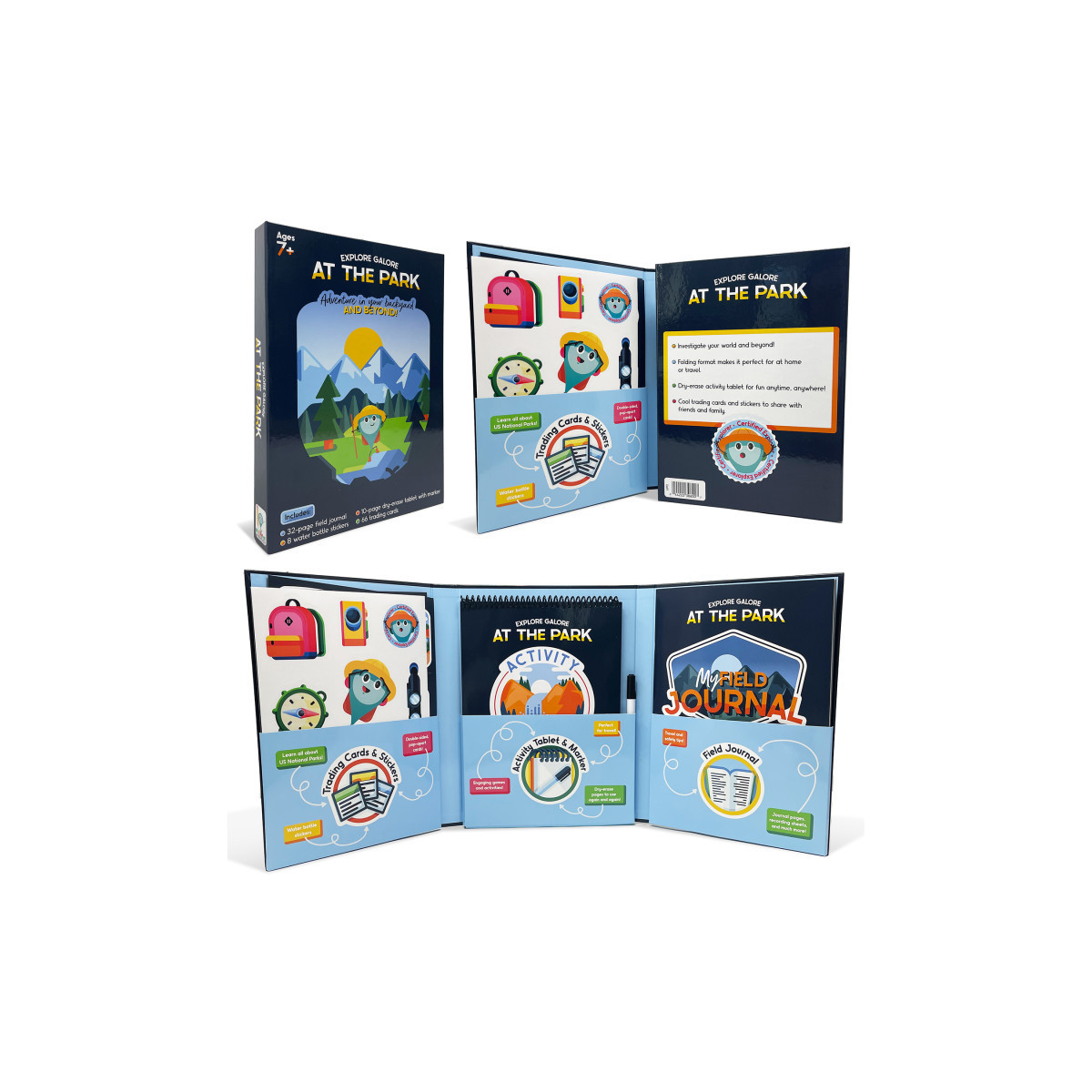Investigate your world and beyond with Carson Dellosa's Be Clever Wherever Explore Galore: At the Park Wipe Clean Activity Book! Activity books for kids are a great way to teach kids all about US national parks with fun summer learning and road trip activities that are both fun AND educational. This dry erase activity book set includes a wipe clean activity book a dry erase marker, a 32-page field journal, 64 trading cards, 2 blank cards, and 8 water bottle stickers for versatile learning fun. Learn all about US national parks while playing bingo, solving puzzles, completing dry erase activities, and more in the activity book. Record the things you've seen, learned, and experienced during your adventures along the way in the travel journal.