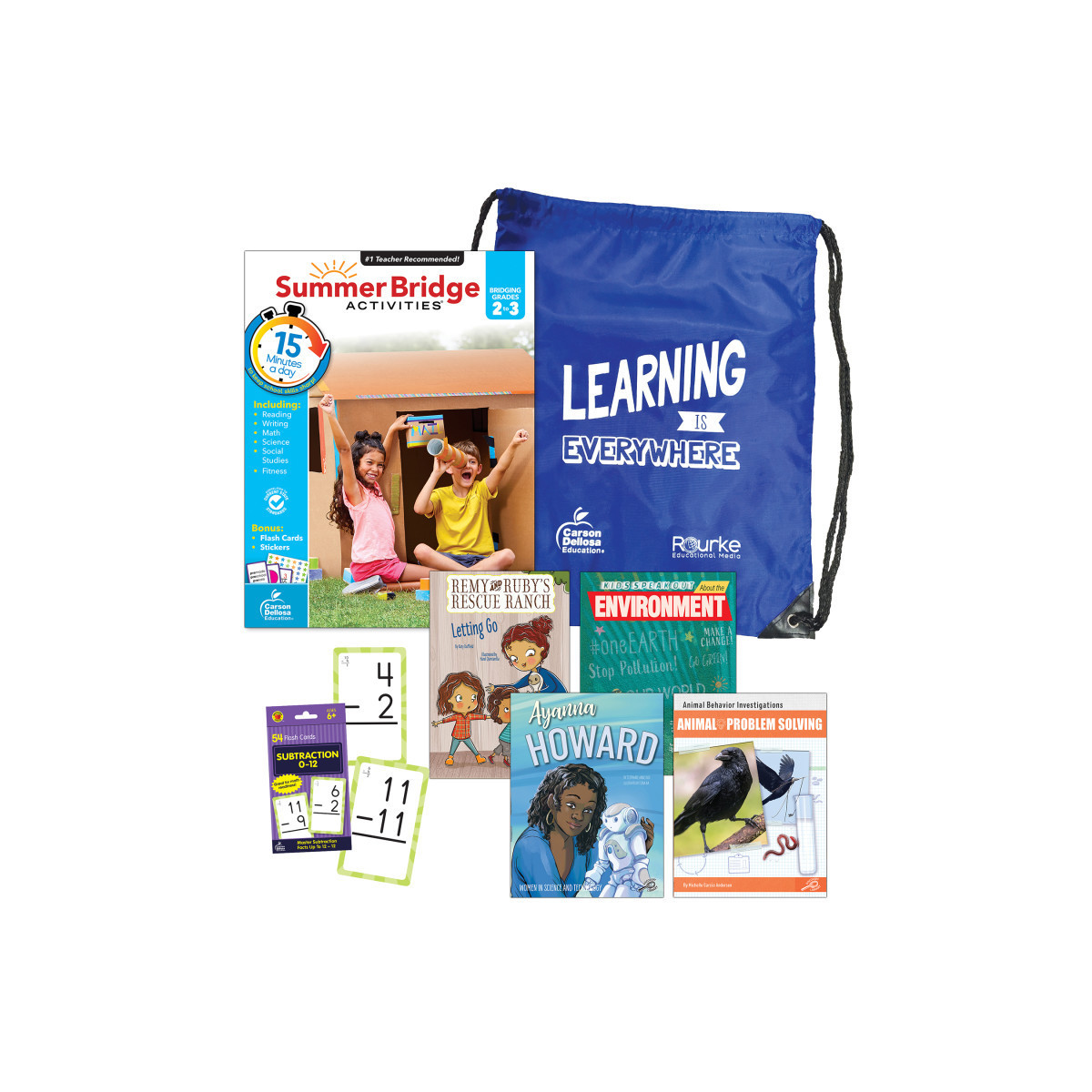 Help prevent summer learning loss and prepare your second grader for back-to-school success in just 15 minutes a day with engaging summer learning activities, children's books, and fun games—all in one bundle! Featuring a Summer Bridge Activities 2nd grade to 3rd grade workbook, math flash cards, and kid's books, this backpack is great for practice and enrichment to keep your child learning all summer long and better prepare for the school year ahead.