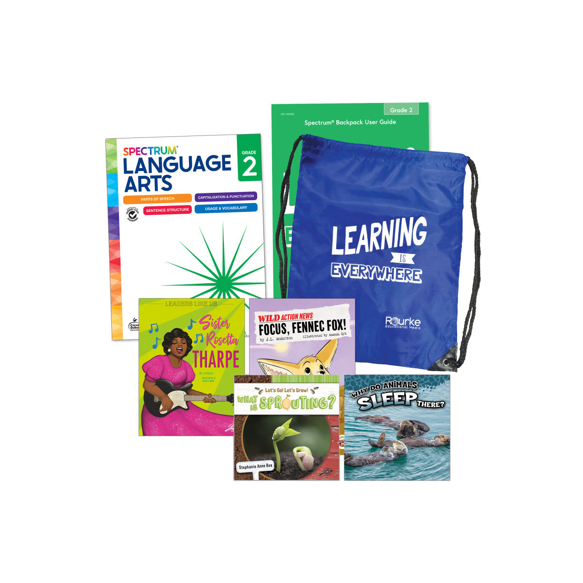 Provide a spectrum of literacy support for your 2nd grade student with the Spectrum Grade 2 Language and Literacy Backpack! This ELA & Reading Comprehension 2nd Grade Bundle features four 2nd grade reading books and a language arts 2nd grade workbook. The second grade workbook features parent support pages at the beginning of each chapter with helpful definitions, tools and tips, and a skills list to provide a spectrum of support for your leaner. QR codes are also included throughout the language arts workbook that take you to free video tutorials to help explain and break down certain concepts. An answer key is included in the back of the workbook to track your child's progress and accuracy. The bundle of second grade reading books features both nonfiction and fiction children's books for a variety of reading opportunities. The bundle is stored securely in the durable drawstring bag so your child can read and practice skills while on the go!