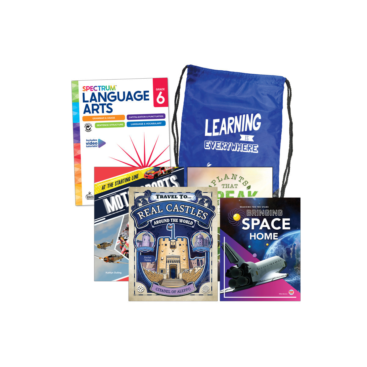 This bundle includes a 6th grade language arts workbook as well as fiction and nonfiction books.