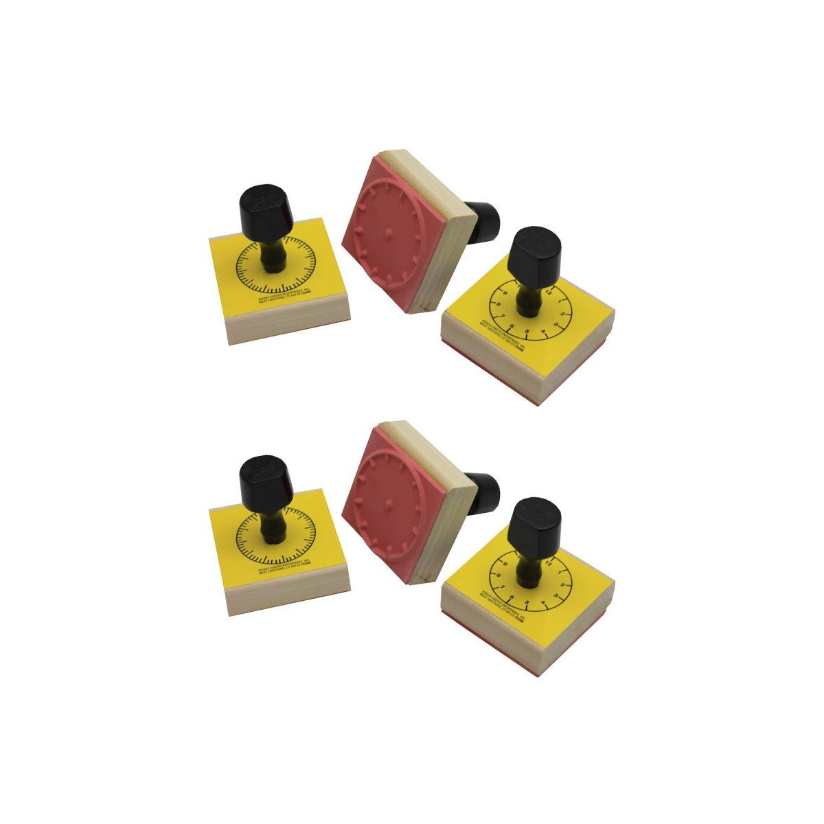 Use this set of three rubber stamps to make time task cards or have students create their own clock faces. Each set includes three circular faces about 2" in diameter each. One shows 12 five-minute divisions; the second shows 60 minute divisions and the third one shows 12 five-minute divisions with the hour numerals. Sold as 2 sets for a total of 6 stamps.