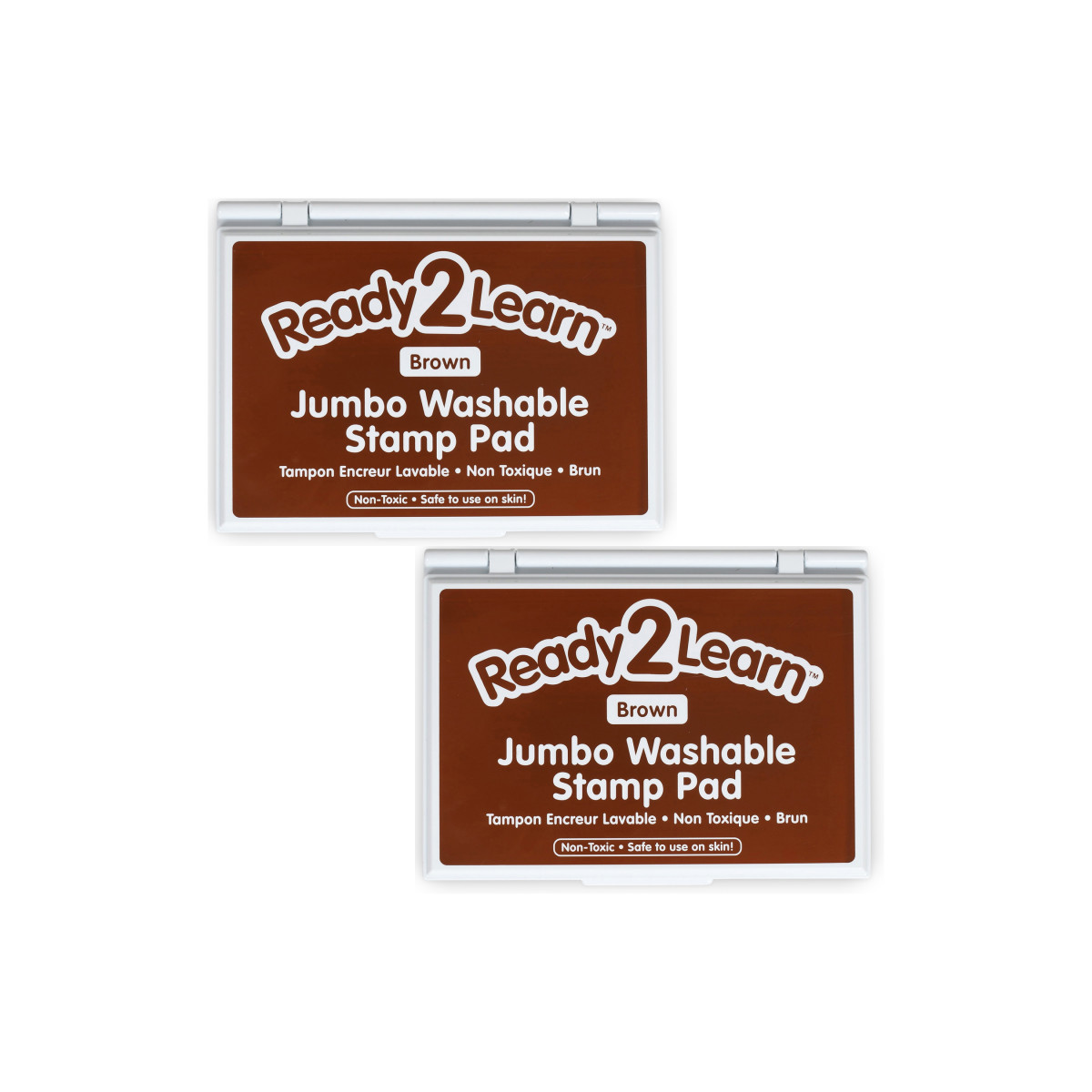 This large brown stamp pad contains washable, non-toxic ink. Washable stamp pads offer a variety of creative possibilities with easy cleanup! The ink is safe for hand and finger stamping and washes off skin and most clothing with warm, soapy water. The quick-drying, fade-resistant ink is also acid-free for archival quality. The raised pad means there are no hard edges around the ink. Children can press down without hitting an edge, which provides more area for stamping. The brown ink in this stamp pad presents crisp, vivid images when stamped. Stamping is a fun way to develop fine motor skills and foster creative expression. Each ink pad is packaged in a plastic case with a flip cover to prevent it from drying out. For ages 3+. Size of ink pad: 6.2"L x 4.1"W. Size of entire stamp pad (with plastic casing): 6.7"L x 4.9"W x 0.75"H. Sold as a pack of 2 stamp pads.