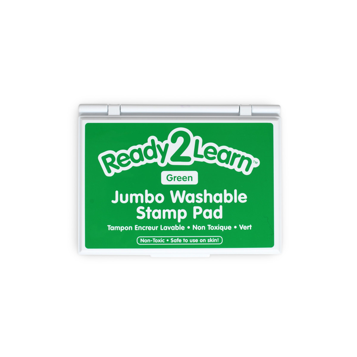 This large green stamp pad contains washable, non-toxic ink. Washable stamp pads offer a variety of creative possibilities with easy cleanup! The ink is safe for hand and finger stamping and washes off skin and most clothing with warm, soapy water. The quick-drying, fade-resistant ink is also acid-free for archival quality. The raised pad means there are no hard edges around the ink. Children can press down without hitting an edge, which provides more area for stamping. The black ink in this stamp pad presents crisp, vivid images when stamped. Stamping is a fun way to develop fine motor skills and foster creative expression. The ink pad is packaged in a plastic case with a flip cover to prevent it from drying out. For ages 3+. Size of ink pad: 6.2"L x 4.1"W. Size of entire stamp pad (with plastic casing): 6.7"L x 4.9"W x 0.75"H.