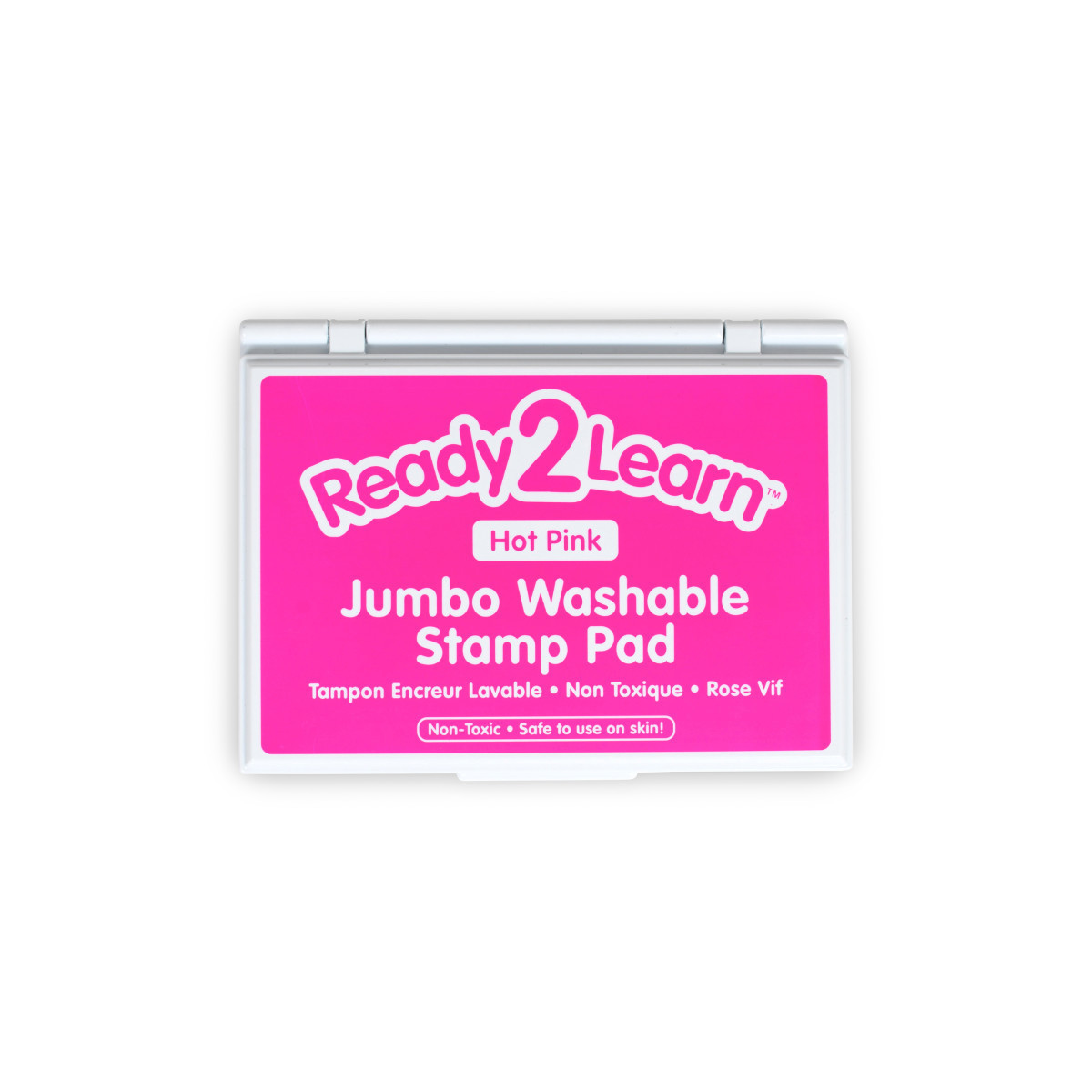 This large hot pink stamp pad contains washable, non-toxic ink. Washable stamp pads offer a variety of creative possibilities with easy cleanup! The ink is safe for hand and finger stamping and washes off skin and most clothing with warm, soapy water. The quick-drying, fade-resistant ink is also acid-free for archival quality. The raised pad means there are no hard edges around the ink. Children can press down without hitting an edge, which provides more area for stamping. The black ink in this stamp pad presents crisp, vivid images when stamped. Stamping is a fun way to develop fine motor skills and foster creative expression. The ink pad is packaged in a plastic case with a flip cover to prevent it from drying out. For ages 3+. Size of ink pad: 6.2"L x 4.1"W. Size of entire stamp pad (with plastic casing): 6.7"L x 4.9"W x 0.75"H.