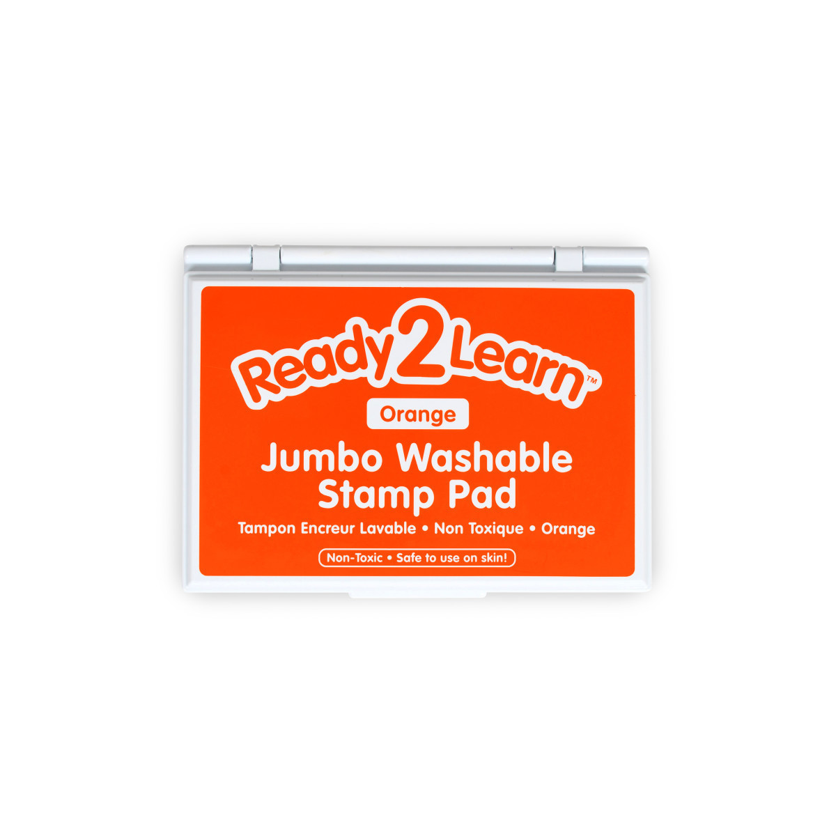 This large orange stamp pad contains washable, non-toxic ink. Washable stamp pads offer a variety of creative possibilities with easy cleanup! The ink is safe for hand and finger stamping and washes off skin and most clothing with warm, soapy water. The quick-drying, fade-resistant ink is also acid-free for archival quality. The raised pad means there are no hard edges around the ink. Children can press down without hitting an edge, which provides more area for stamping. The black ink in this stamp pad presents crisp, vivid images when stamped. Stamping is a fun way to develop fine motor skills and foster creative expression. The ink pad is packaged in a plastic case with a flip cover to prevent it from drying out. For ages 3+. Size of ink pad: 6.2"L x 4.1"W. Size of entire stamp pad (with plastic casing): 6.7"L x 4.9"W x 0.75"H.