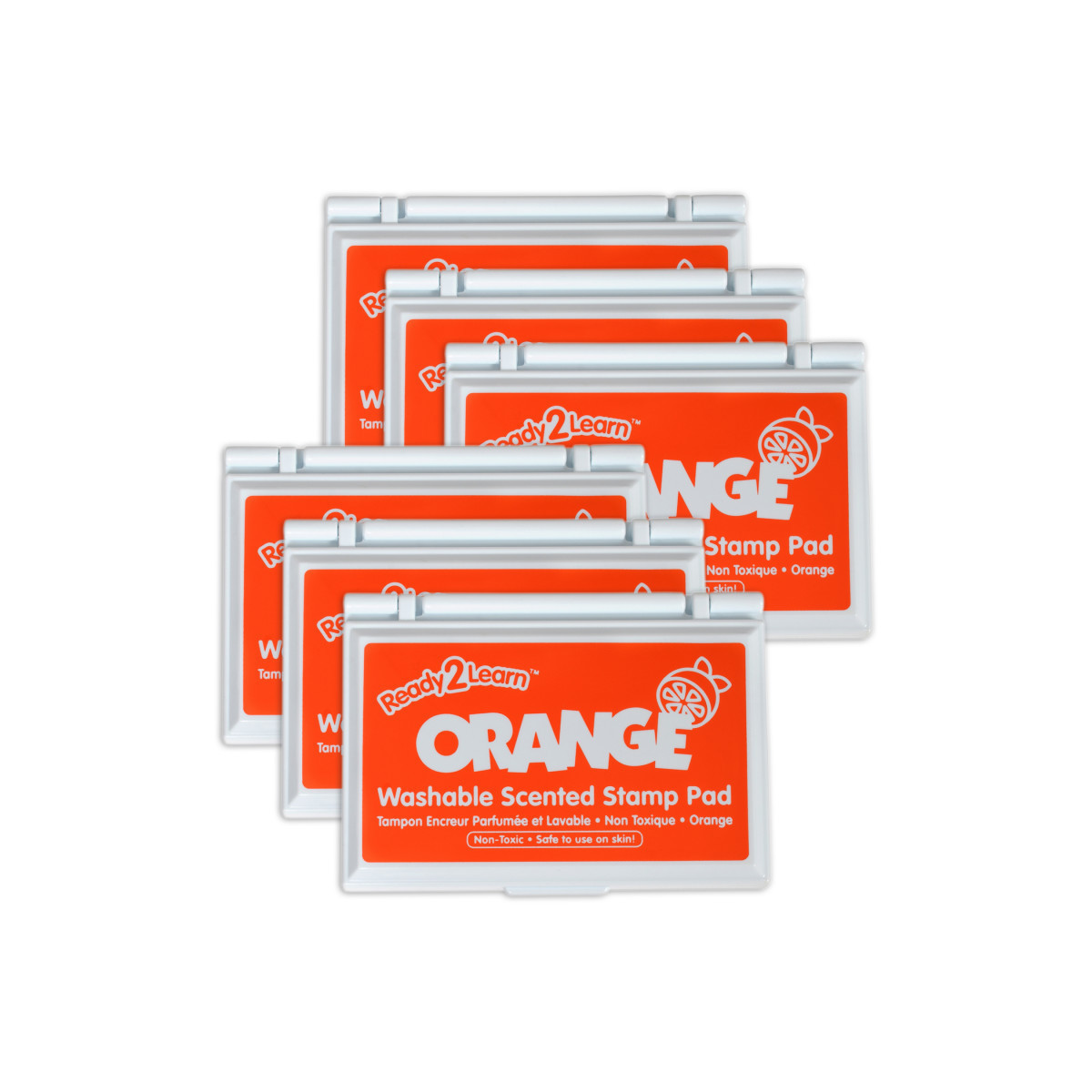 This orange stamp pad contains ink which smells like oranges. The non-toxic ink dries quickly when stamped and is fade resistant and acid-free for archival quality. The ink presents crisp, vivid images when stamped. A multisensory addition to arts and crafts time, scented stamp pads offer a variety of creative possibilities. The raised pad means there are no hard edges around the ink. Children can press down without hitting an edge, which provides more area for stamping! Stamping is a fun way to develop fine motor skills and foster creative expression. The ink pad is packaged in a plastic case with flip cover to prevent it drying out. For ages 3+. Size of ink pad: 3.5"L x 2.1"W. Size of entire stamp pad (with plastic casing): 3.75"L x 2.8"W x 0.6"H. Sold as a pack of 6 stamp pads.
