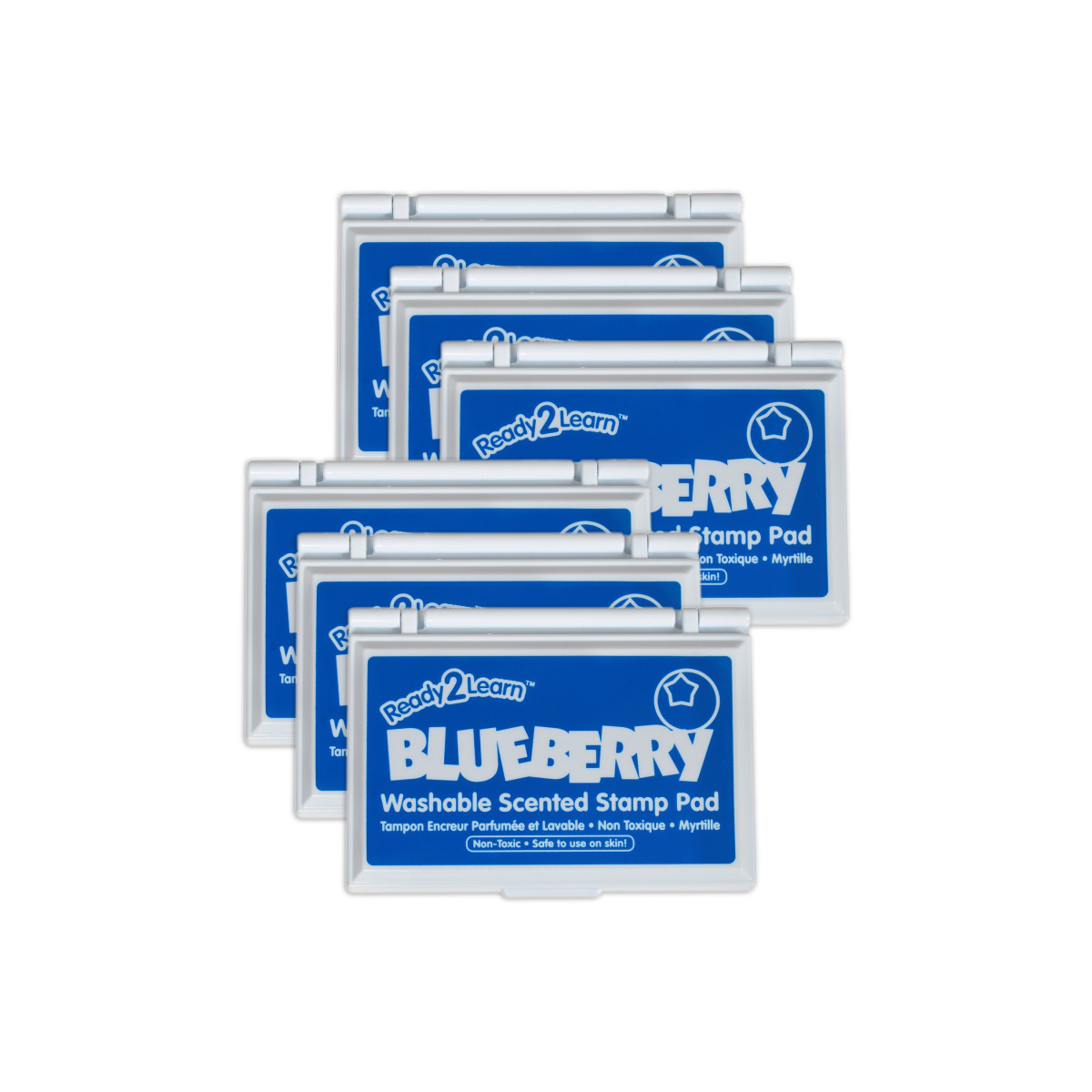 This blue stamp pad contains ink which smells like blueberries. The non-toxic ink dries quickly when stamped and is fade resistant and acid-free for archival quality. The ink presents crisp, vivid images when stamped. A multisensory addition to arts and crafts time, scented stamp pads offer a variety of creative possibilities. The raised pad means there are no hard edges around the ink. Children can press down without hitting an edge, which provides more area for stamping! Stamping is a fun way to develop fine motor skills and foster creative expression. The ink pad is packaged in a plastic case with flip cover to prevent it drying out. For ages 3+. Size of ink pad: 3.5"L x 2.1"W. Size of entire stamp pad (with plastic casing): 3.75"L x 2.8"W x 0.6"H. Sold as a pack of 6 stamp pads.