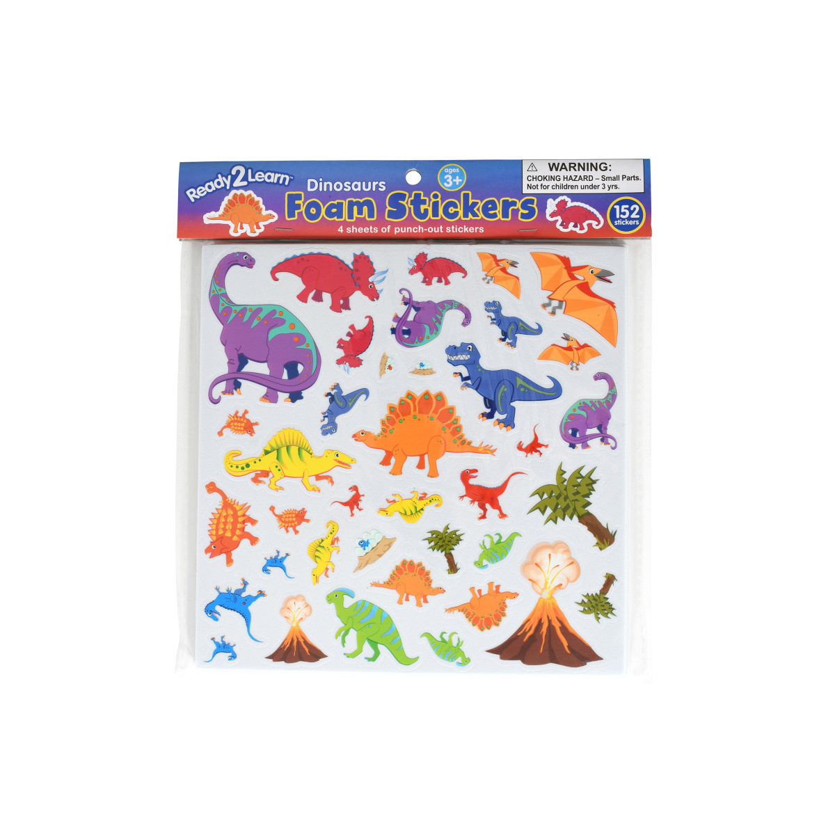 - 152 DINOSAUR STICKERS -- This dinosaur-themed sticker pack includes 4 foam sheets, each with 38 punch-out stickers in 13 different images. Decorate with prehistoric designs!