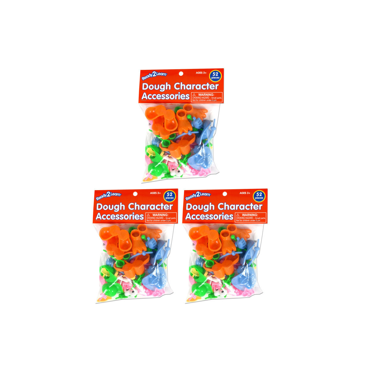 Bring your dough creations to life! Each set comes with 52 body parts and accessories in 21 different shapes. They're versatile and feature arms, feet, eyes and much more for decorating all kinds of objects. Put them on desserts, fruits, vegetables, crafts, sculptures and more. Children can add personality and create narratives as they make new characters. Dough characters help children explore emotions, role play, communication and social-emotional learning. Children love to create whacky characters and act out stories. Develop imagination, creative expression, hand-eye coordination and fine motor skills as children insert different accessories into dough. These accessories are made of durable plastic, so children can use them repeatedly. The accessories quickly come clean with soap and warm water. Includes 2 types of hands, 3 types of eyes, 2 types of feet, 3 types of mouth, 2 types of nose, 2 types of ears, eyebrows, a mustache, 2 hats and 3 miscellaneous appendages. || For ages 3+. Size of pointy feet: 2.7"L. Size of eyebrow: 1.7"L. Dough not included. Colors may vary. Sold as 3 sets for a total of 156 pieces.