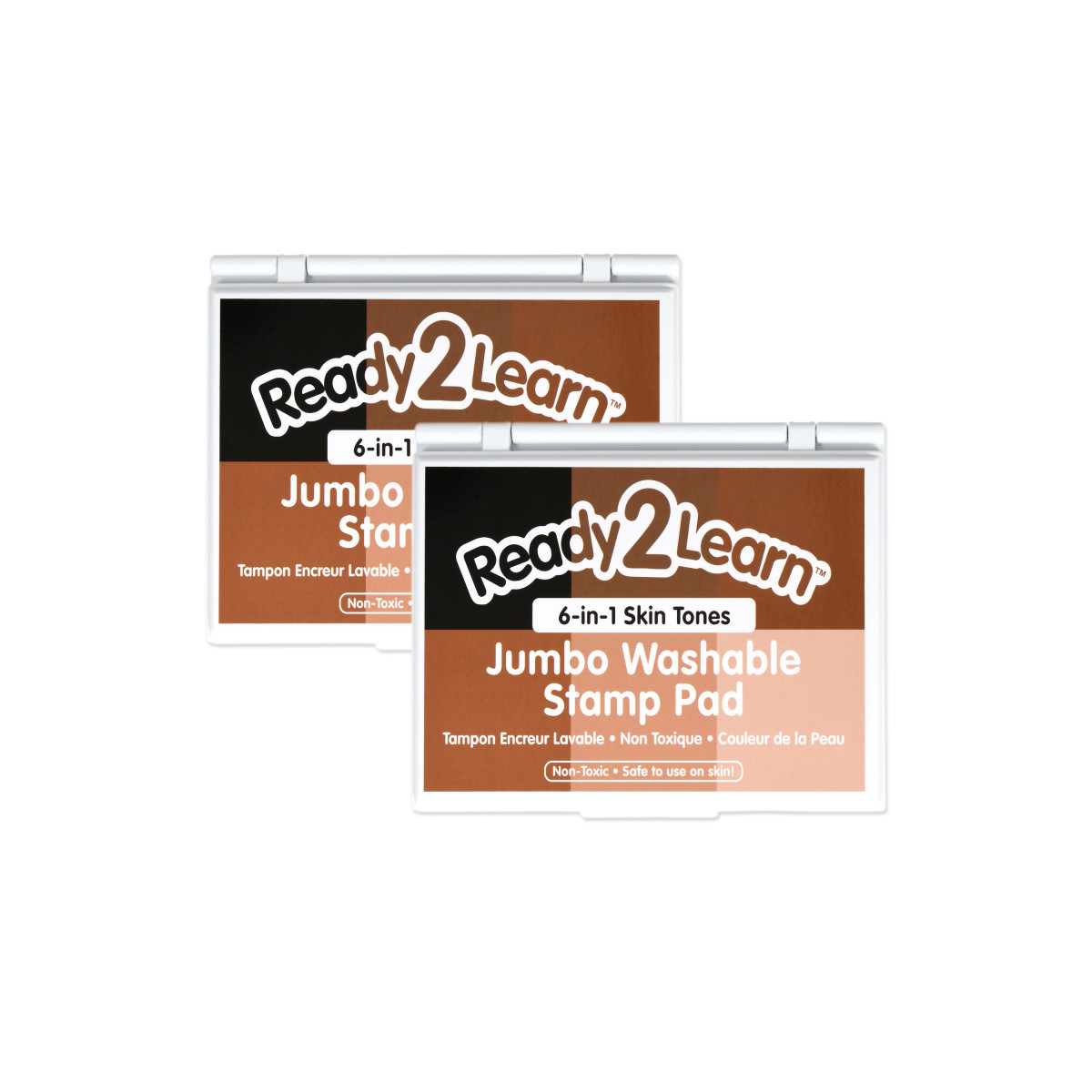 This large stamp pad contains 6 different skin tone ink pads in one case. Washable stamp pads offer a variety of creative possibilities with easy cleaning! The ink washes off fingers and most clothing with warm, soapy water. The quick-drying, fade-resistant ink is also acid-free for archival quality. The skin-colored ink in this stamp pad presents crisp, vivid images when stamped. This ink pad provides an opportunity to open discussions about inclusion and diversity through play. Stamping is a fun way to develop fine motor skills and foster creative expression. The ink pads are packaged in a plastic case with a flip cover to prevent them from drying out. For ages 3+. Size of each color: 2"L x 2"W. Size of entire stamp pad (with plastic casing): 6.7"L x 4.9"W x 0.75"H. Sold as a pack of 2 stamp pads.