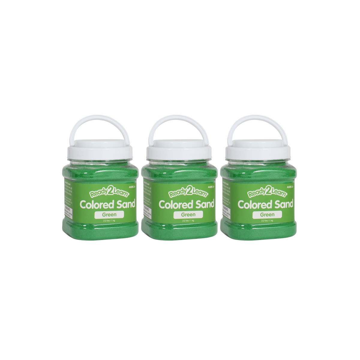 COLORED SAND FOR KIDS -- Sold as a pack of 3 jars, each jar contains 2.2 lbs of decorative, fine-grain green sand. Colored sand is a versatile addition to any crafting supply collection or sensory bin.
