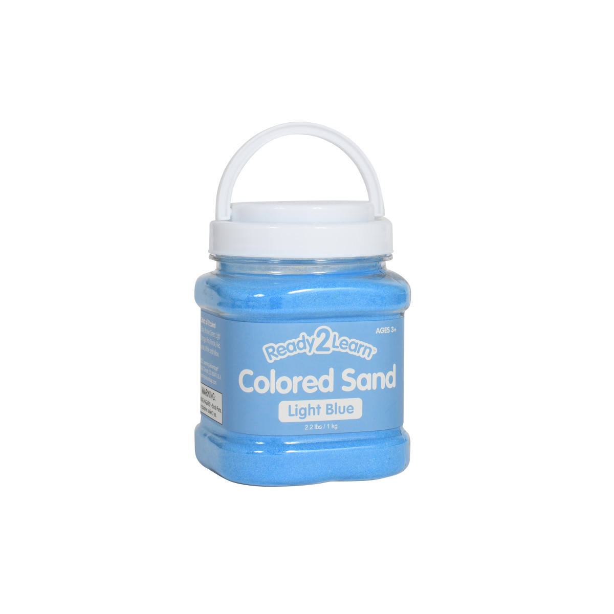 This jar contains 2.2 lbs of decorative light blue sand. Colored sand is a versatile addition to any crafting supply collection or sensory bin. Adhere sand to 2D art projects for color and texture. Create layered 3D sand art in jars, bottles, glasses, flower vases, shadowboxes and more. Or, incorporate sand into a variety of sensory stations and activities. Crafting with sand contributes to the development of children's fine motor skills, hand-eye coordination and creative expression. The jar features a lid and a handle for easy cleanup, storage and travel. This sand is non-toxic. For ages 3+. Size of jar: 3.25"L x 3.5"W x 5"H.