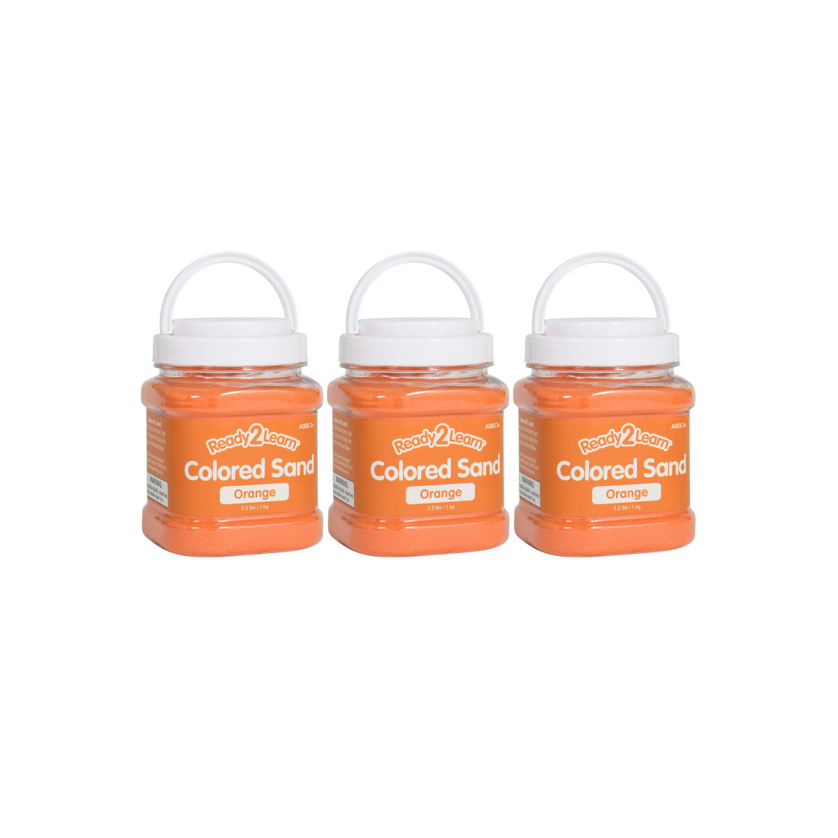 Each jar contains 2.2 lbs of decorative orange sand. Colored sand is a versatile addition to any crafting supply collection or sensory bin. Adhere sand to 2D art projects for color and texture. Create layered 3D sand art in jars, bottles, glasses, flower vases, shadowboxes and more. Or, incorporate sand into a variety of sensory stations and activities. Crafting with sand contributes to the development of children's fine motor skills, hand-eye coordination and creative expression. The jar features a lid and a handle for easy cleanup, storage and travel. This sand is non-toxic. For ages 3+. Size of jar: 3.25"L x 3.5"W x 5"H. Sold as a pack of 3 jars of sand.