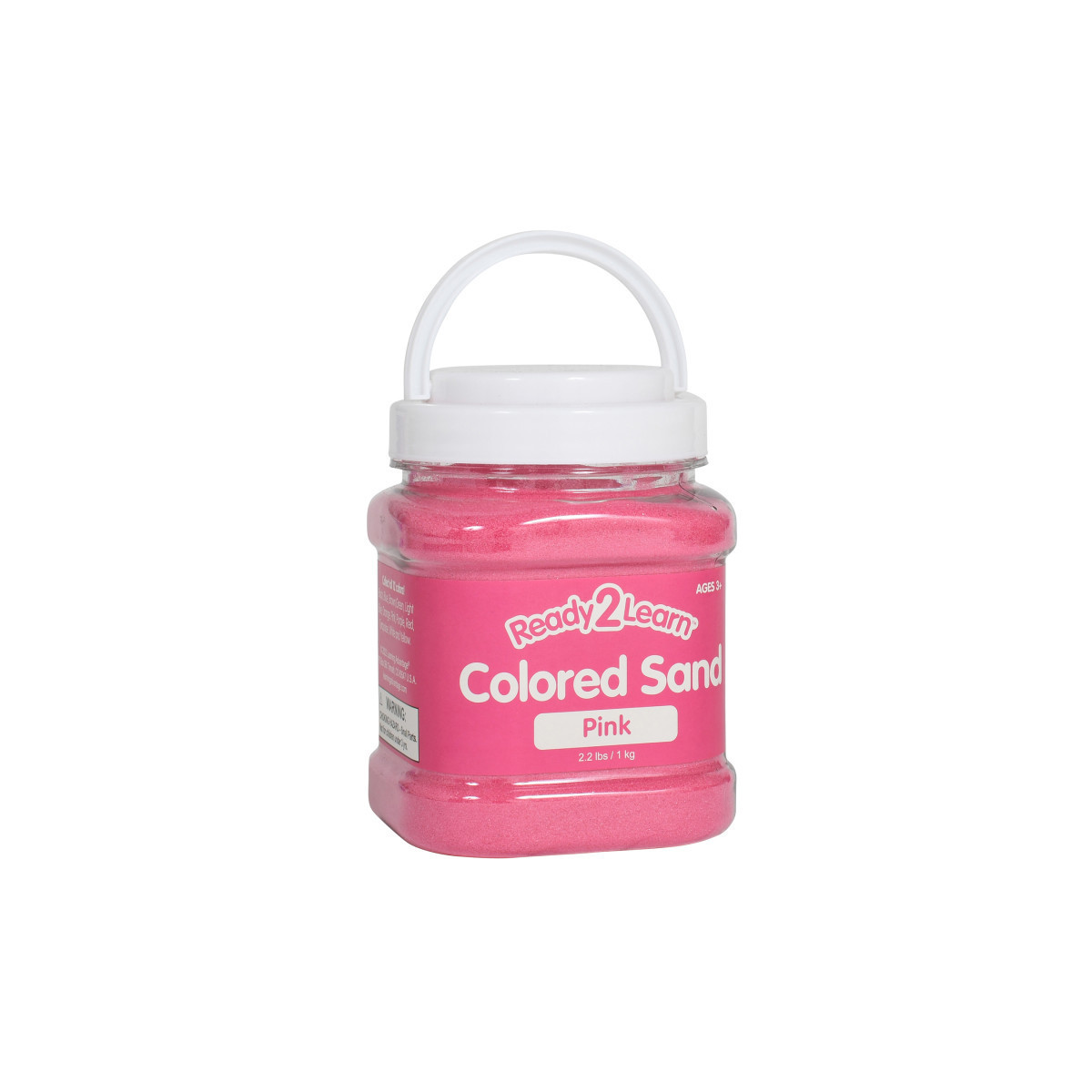 This jar contains 2.2 lbs of decorative pink sand. Colored sand is a versatile addition to any crafting supply collection or sensory bin. Adhere sand to 2D art projects for color and texture. Create layered 3D sand art in jars, bottles, glasses, flower vases, shadowboxes and more. Or, incorporate sand into a variety of sensory stations and activities. Crafting with sand contributes to the development of children's fine motor skills, hand-eye coordination and creative expression. The jar features a lid and a handle for easy cleanup, storage and travel. This sand is non-toxic. For ages 3+. Size of jar: 3.25"L x 3.5"W x 5"H.