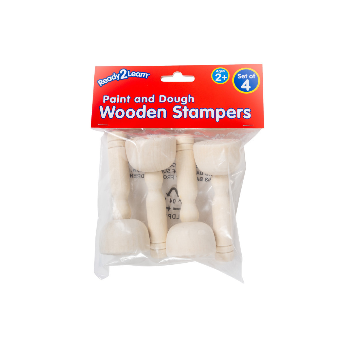 This set comes with 4 wooden dough stampers. Each stamper features a different design: flowers, nesting circles, wedges and wedges with circles. Use these stampers to press designs into clay, dough, baked goods, crafts and more! Children can even mix the designs to make new patterns. Foster imagination and creative expression with these open ended crafting tools. Stampers are a foundational tool in any arts and crafts environment. These tools are made from durable wood, and the large handles are easy for children to manipulate. They're designed to last for years of home or classroom use. To clean them, just rinse with soap and warm water. For ages 3+. Size 4.45"H x 1.77"W.