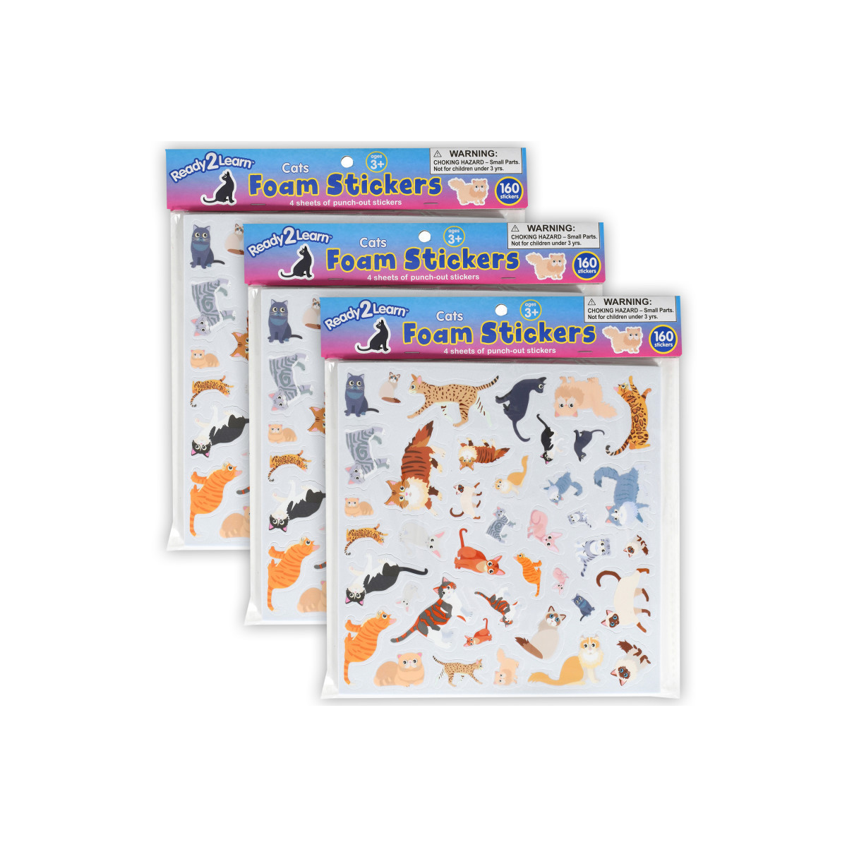 Personalize your stuff with foam cat stickers! Each sticker pack includes 4 foam sheets, each with 40 punch-out stickers in 20 different cat designs. These self-adhesive stickers easily push out of their foam sheets and peel for frustration-free craft time. These 3D stickers are durable, thick and easy to hold. Use these stickers to add your favorite cat breeds to DIY projects, water bottles, computers, phones and more! Give these cat stickers as rewards after chores and homework or as party favors and stocking stuffers. Kids will love to collect all the different cat stickers! For ages 3+. Size of smallest: 0.5"L x 0.6"W. Size of largest: 2.5"L x 1.6"W. Each pack includes 160 stickers. Sold as 3 packs for a total of 480 stickers.
