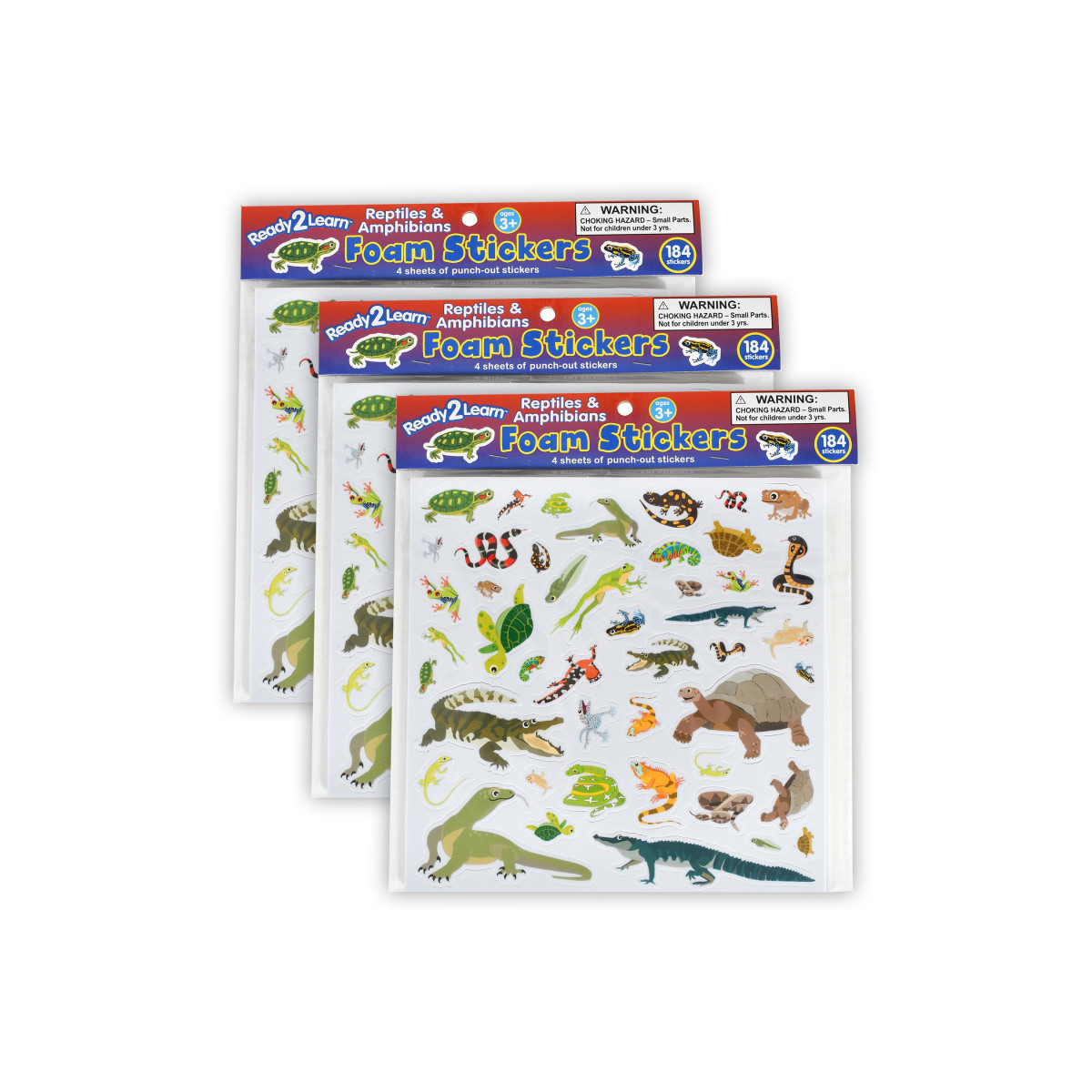 CRITTER STICKERS -- This themed sticker pack includes 4 foam sheets, each with 46 punch-out stickers in 23 different images. Decorate with snakes, frogs, turtles and more!