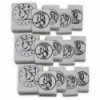 Decorate DIY projects or create early math activities with Coin Stamps! Each set includes 5 wooden stamps with detailed rubber imprints of the heads side of the penny, nickel, dime, quarter and half dollar. Use them to decorate scrapbooks, albums or invitations! Or, create coin identification, addition or subtraction activities of your own. These chunky, wooden stamps are easy for children to use. As children stamp, they will develop fine motor skills, hand-eye coordination an imagination. These stamps can be cleaned with warm soap and water, which makes them an ideal home or classroom accessory! Size of dime stamp: 1.4"L x 1.2"W x 0.9"H. Size of half dollar stamp: 1.2"L x 0.75"W x 0.9"H. Each set includes 5 stamps. Sold as 3 sets for a total of 15 stamps.