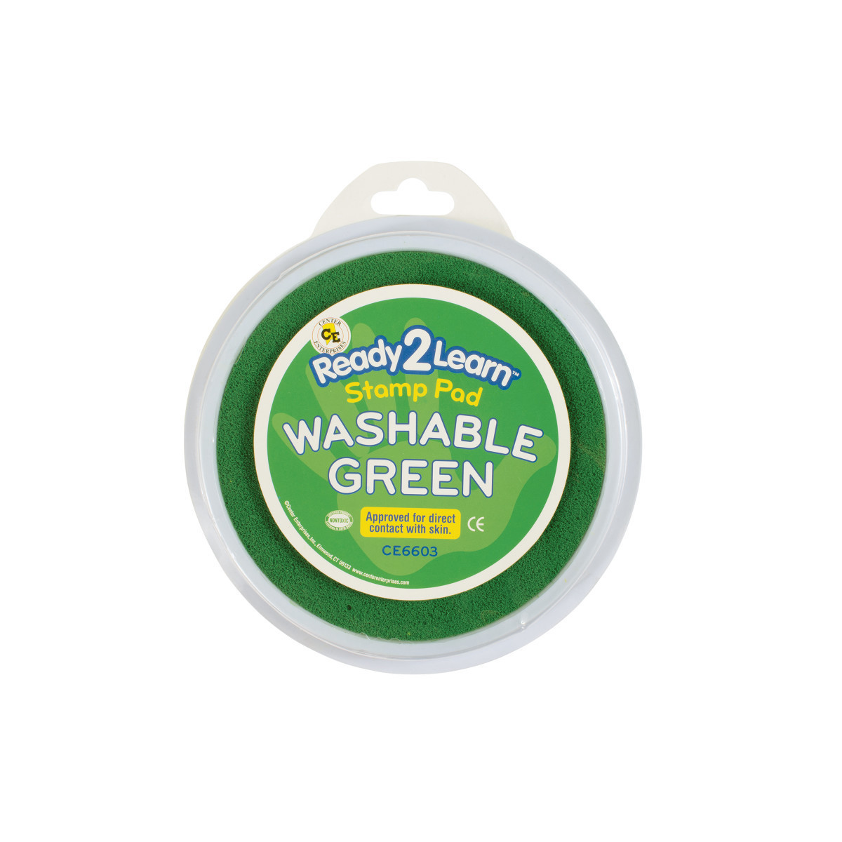 Stamp and create with this green Jumbo Circular Washable Stamp Pad! Made of non-toxic ink, this stamp pad is safe for ages 3+. The ink is acid-free and fade resistant for archival quality, which makes you can store your little artist's creations forever! An open-ended tool to decorate scrapbooks, notebooks or cards, this stamp pad inspires creative expression and imagination. As children stamp, they will develop fine motor skills and hand-eye coordination. This stamp pad features a huge 5.75" diameter for handprints and baby footprints. The ink comes clean with soap and water. Size of ink pad surface area: 5.75" dia.