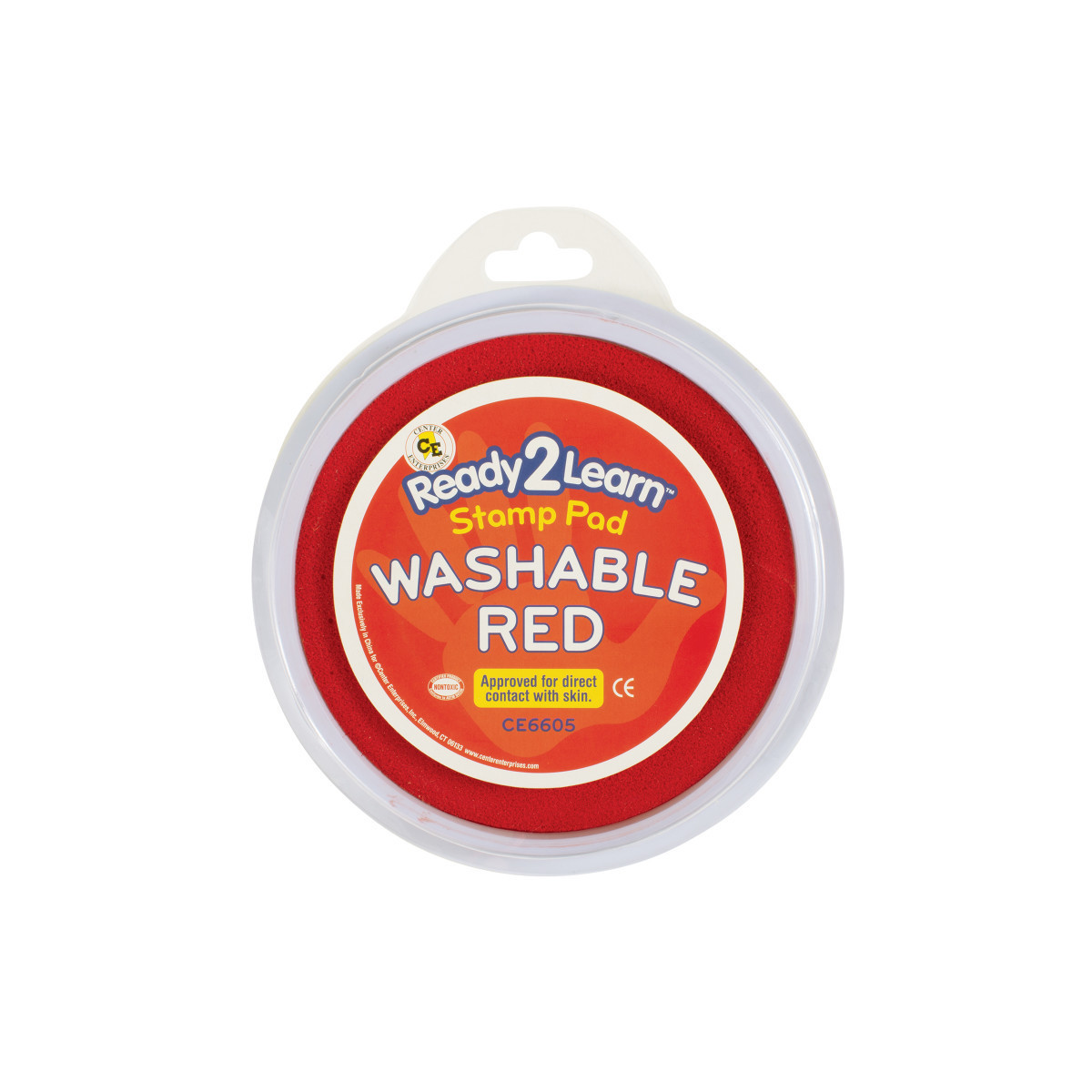 Stamp and create with this red Jumbo Circular Washable Stamp Pad! Made of non-toxic ink, this stamp pad is safe for ages 3+. The ink is acid-free and fade resistant for archival quality, which makes you can store your little artist's creations forever! An open-ended tool to decorate scrapbooks, notebooks or cards, this stamp pad inspires creative expression and imagination. As children stamp, they will develop fine motor skills and hand-eye coordination. This stamp pad features a huge 5.75" diameter for handprints and baby footprints. The ink comes clean with soap and water. Size of ink pad surface area: 5.75" dia.